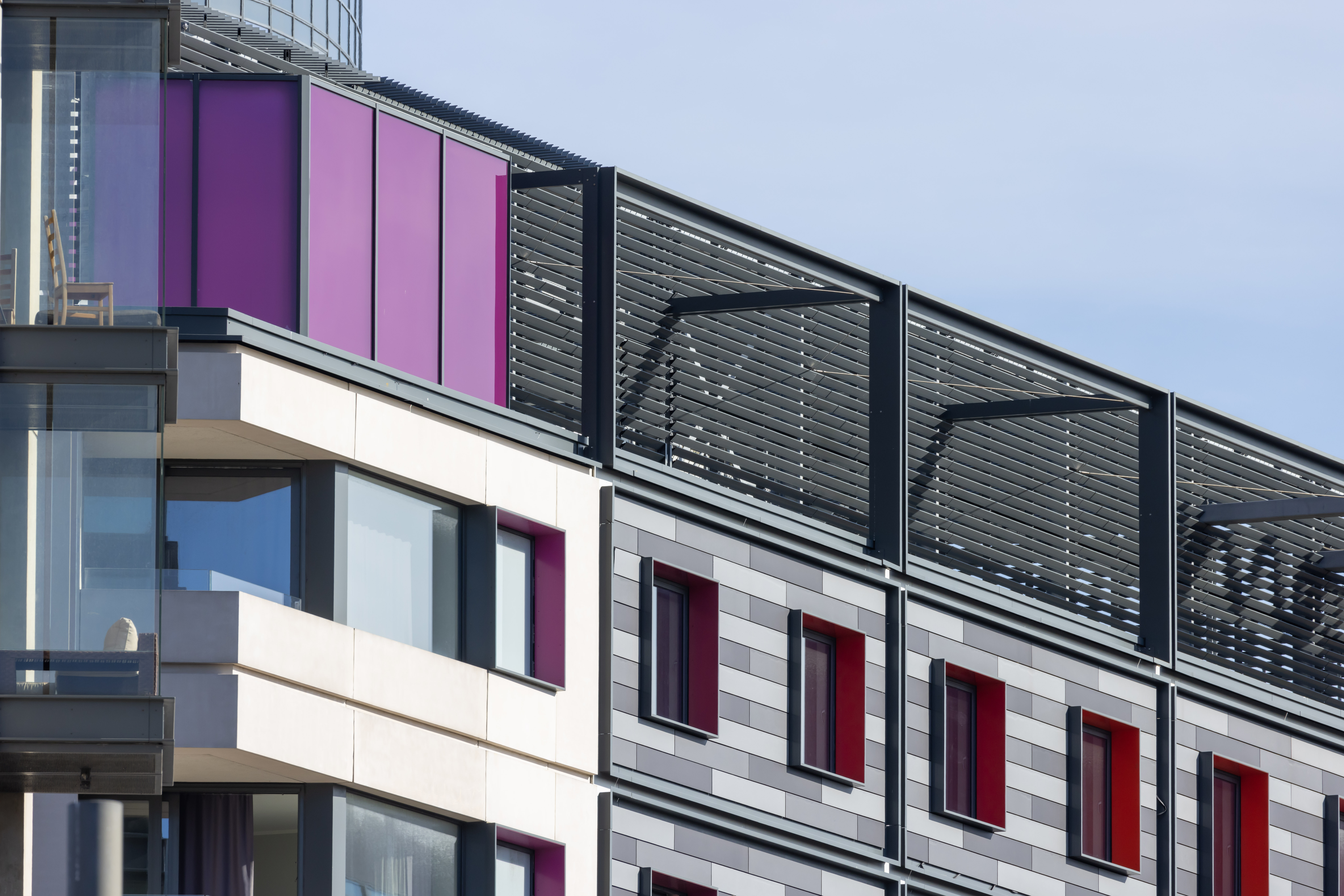 Situated next to Westfield shopping centre and adjacent to the Olympic Park in Stratford, the Moxy Hotel is the first UK hotel from the Marriott Hotels’ budget brand which was open to the public in October 2017. The works onsite began in February of the same year to deliver extensive work to the hotel façade. The external finish of the hotel was considered to be of particular importance by London Legacy Development Corporation (LLDC) and was particularly challenging. As screening on top of the building, it was decided to install the DucoSun 100 C-shaped louvre blades. The screening is ideal for concealing technical areas, thus ensuring a perfect transition with the rest of the façade of this ultra-modern contemporary hotel.