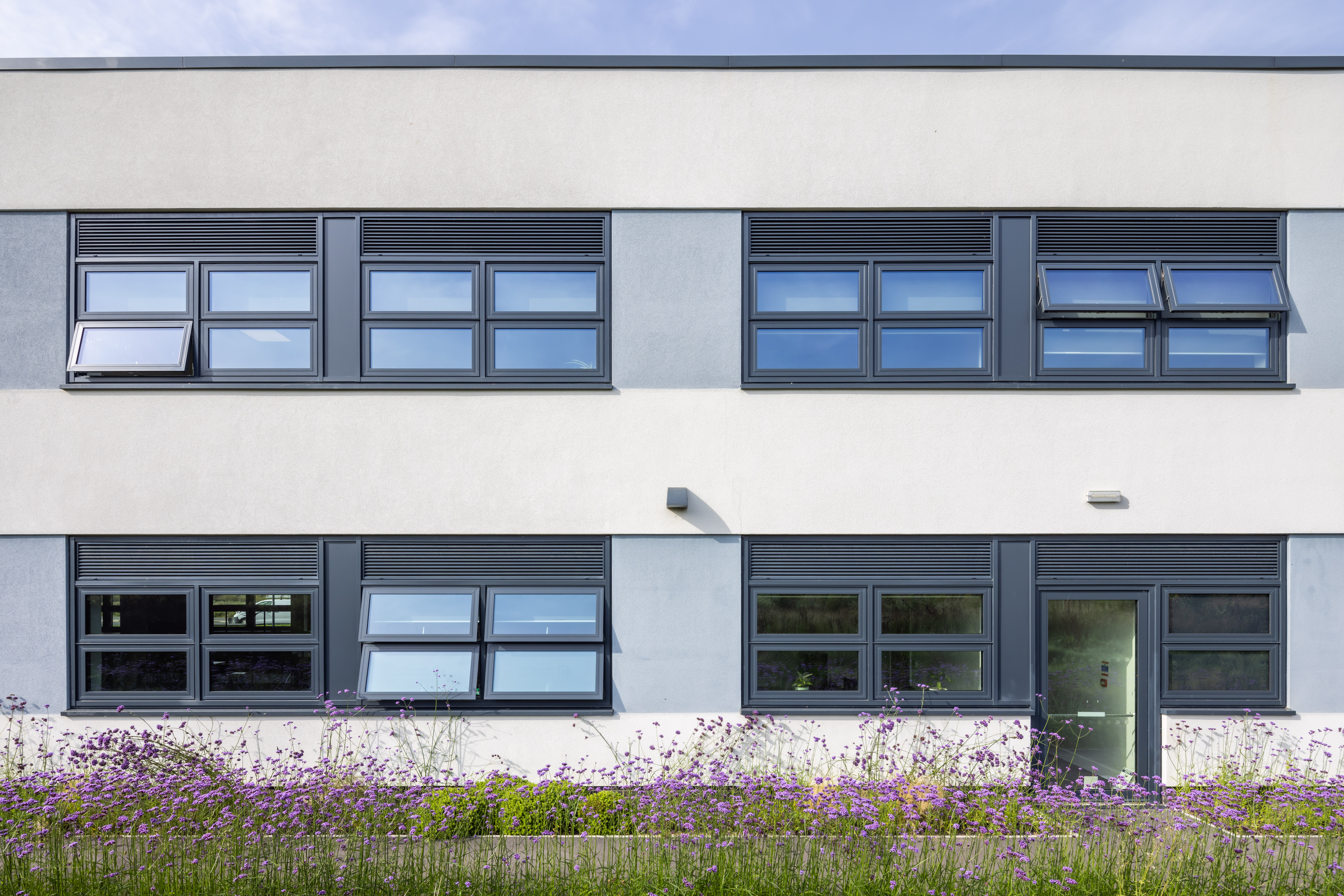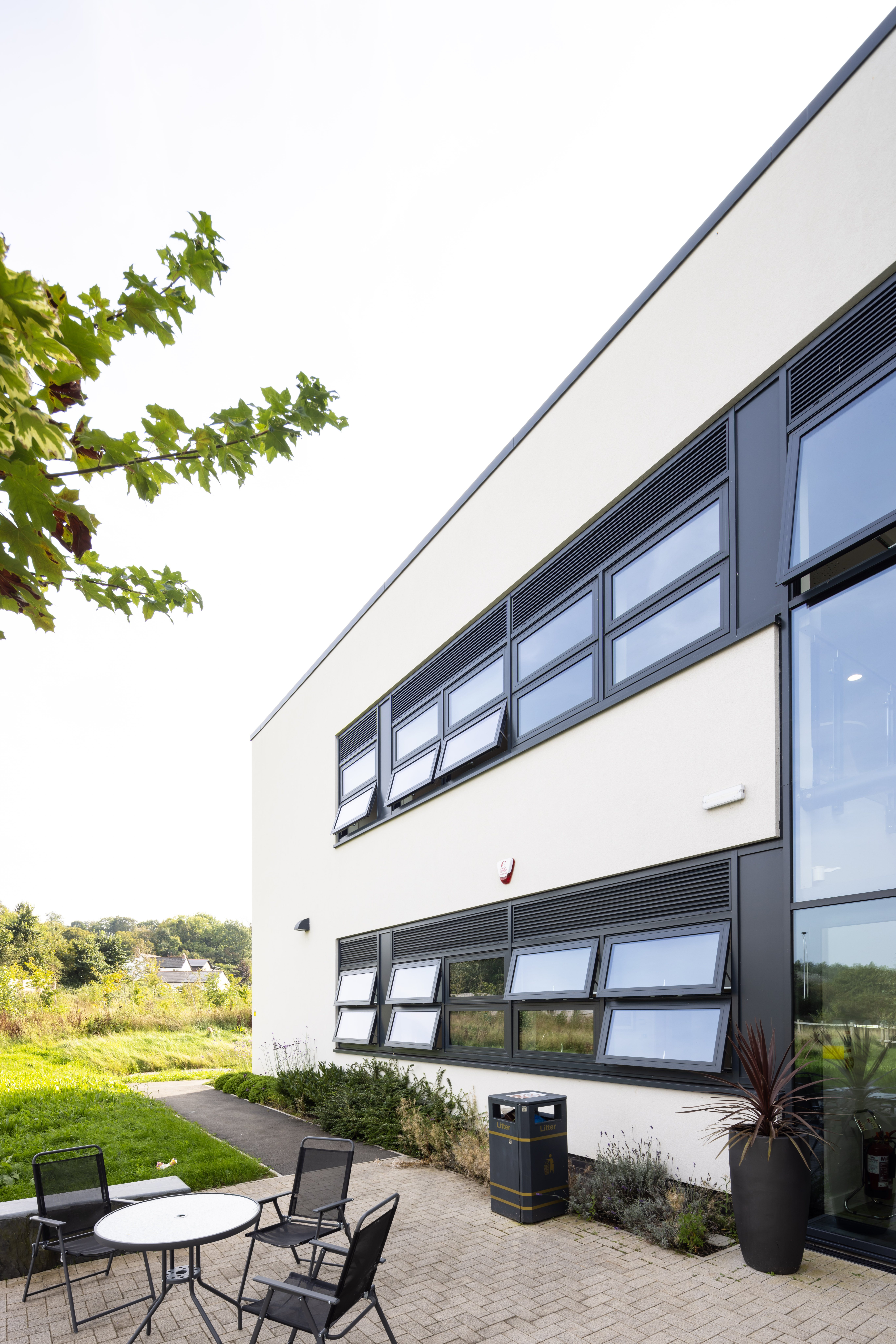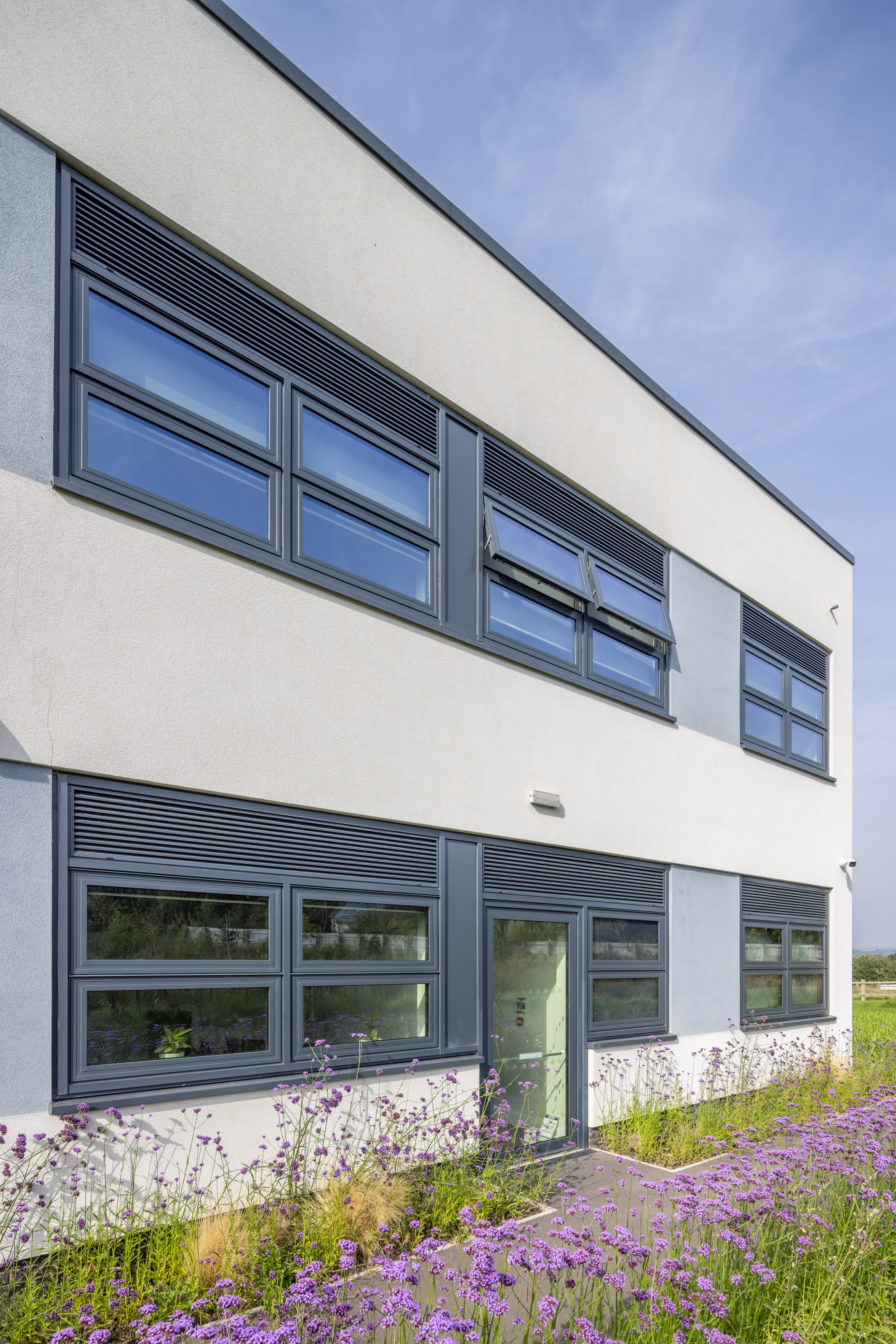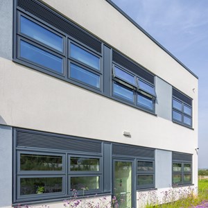 DucoGrille Close 105 blade dampers were installed and fitted with the DucoGrille Solid window grilles. Thanks to the high airflow rate the DucoGrille Close 105 damper is also suitable for adjustable extract. It allows fresh air from the outside enter the Enterprise Centre building through the building envelope ensuring a healthy indoor climate!