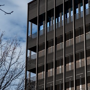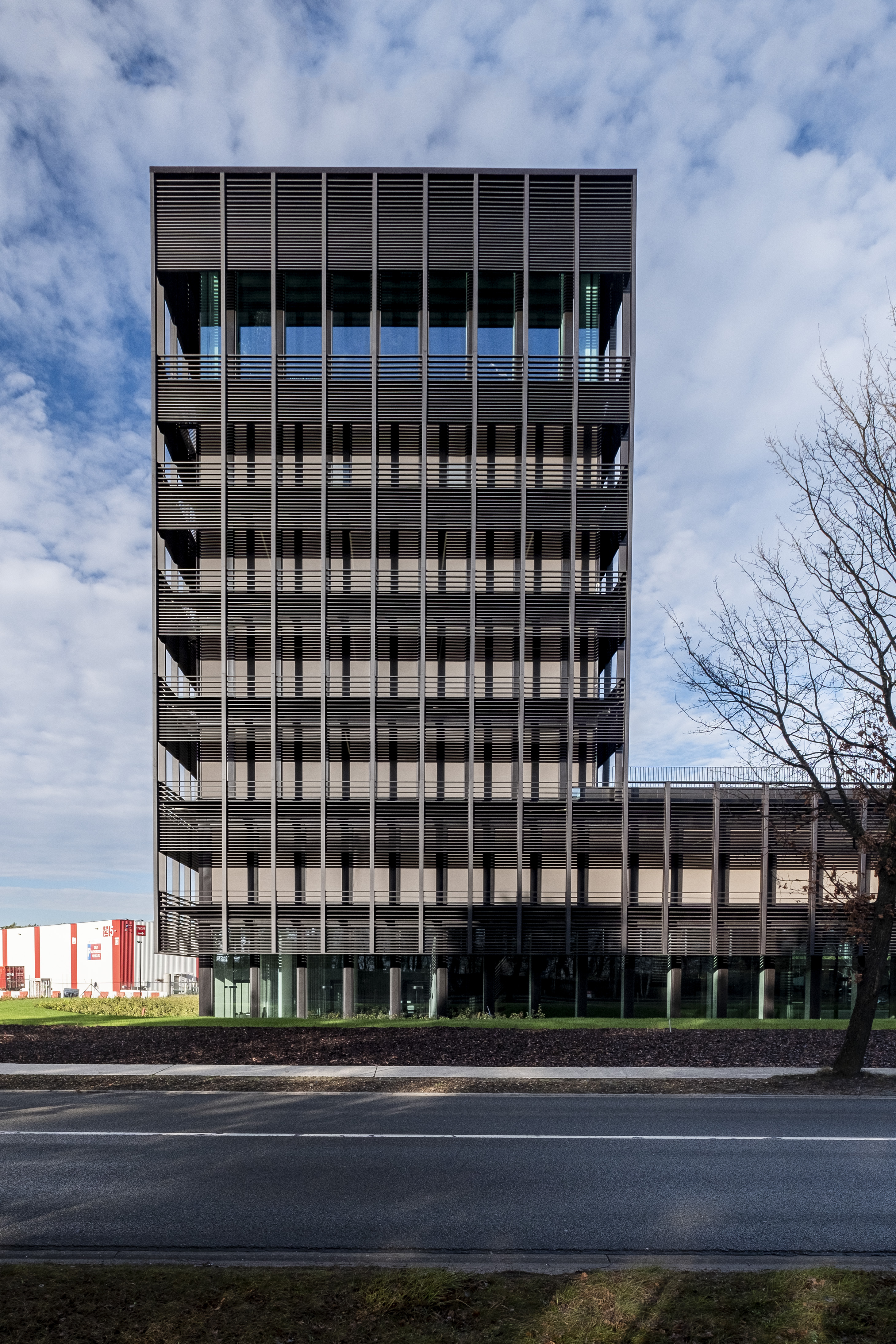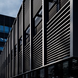 To secure its growth and future, Genk-based logistics service provider H.Essers decided to build a new head office. It had to be a sustainable architectural pearl that would fit perfectly into the local context and evoke memories of the industrial mining past. The facade of the building was completely covered with black rectangular DucoSun Cubic 150 slats.