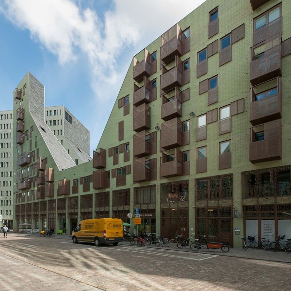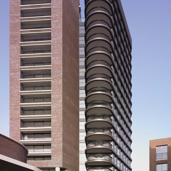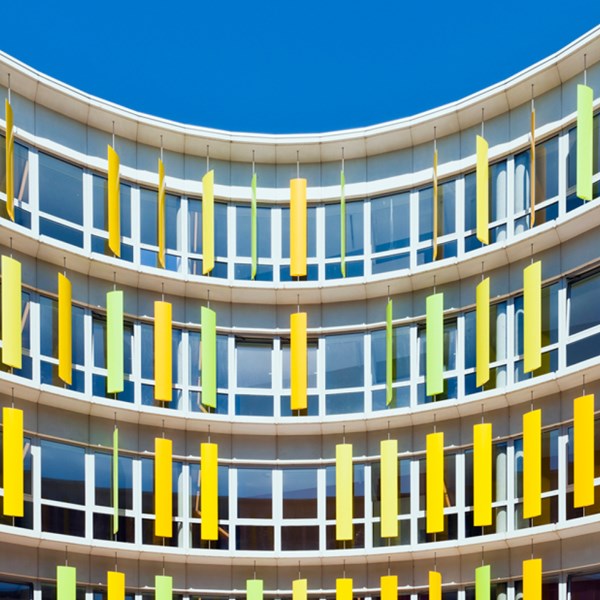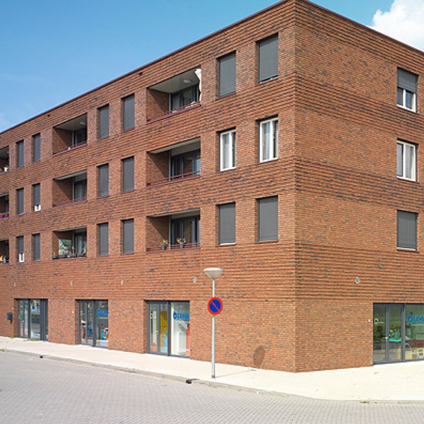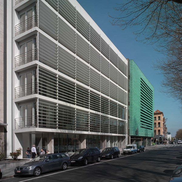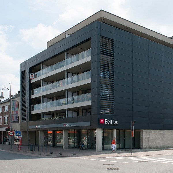 Ducosun Ellips sun shading integrated on residences and Belfius offices in Genk
