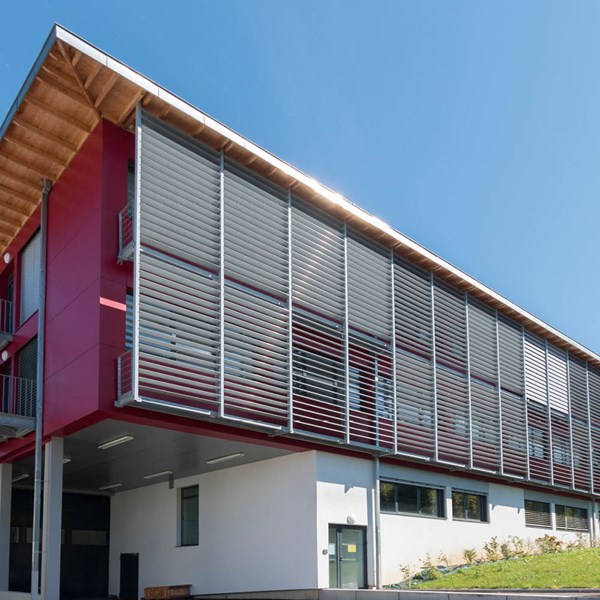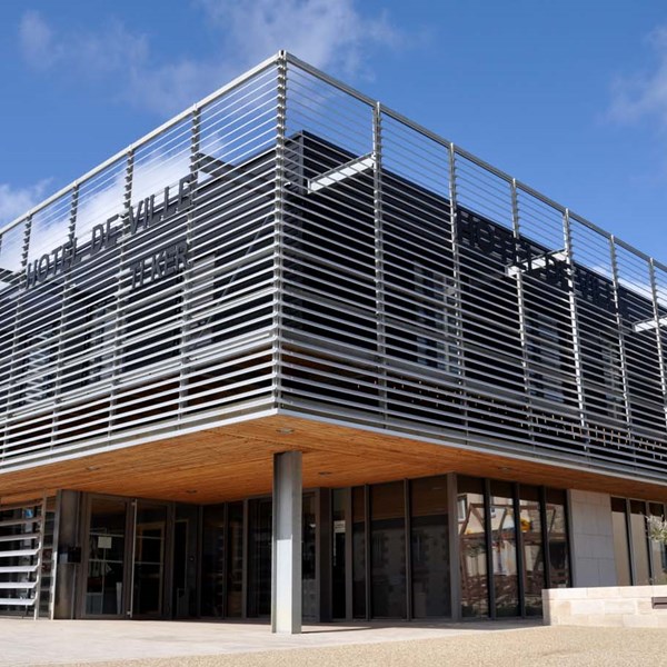 DUCO provided Communauté d'agglomérationof a real eye-catcher. The architectural sun protection is an essential part of the design and immediately catches the eye.