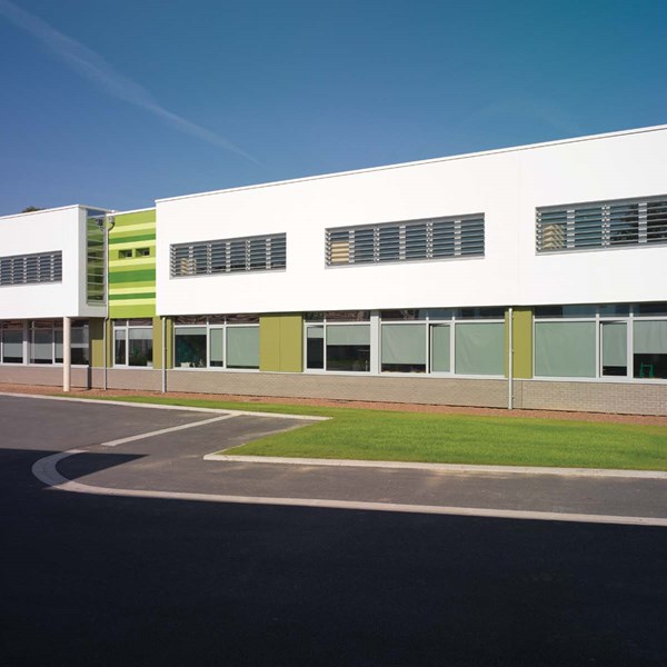 Solar shading was an important aspect in the new construction of College du Val D'authie, whereby DUCO with DucoSun Ellips 150 Multifit en DucoSun Ellips 300 Multifit could offer a ready answer.