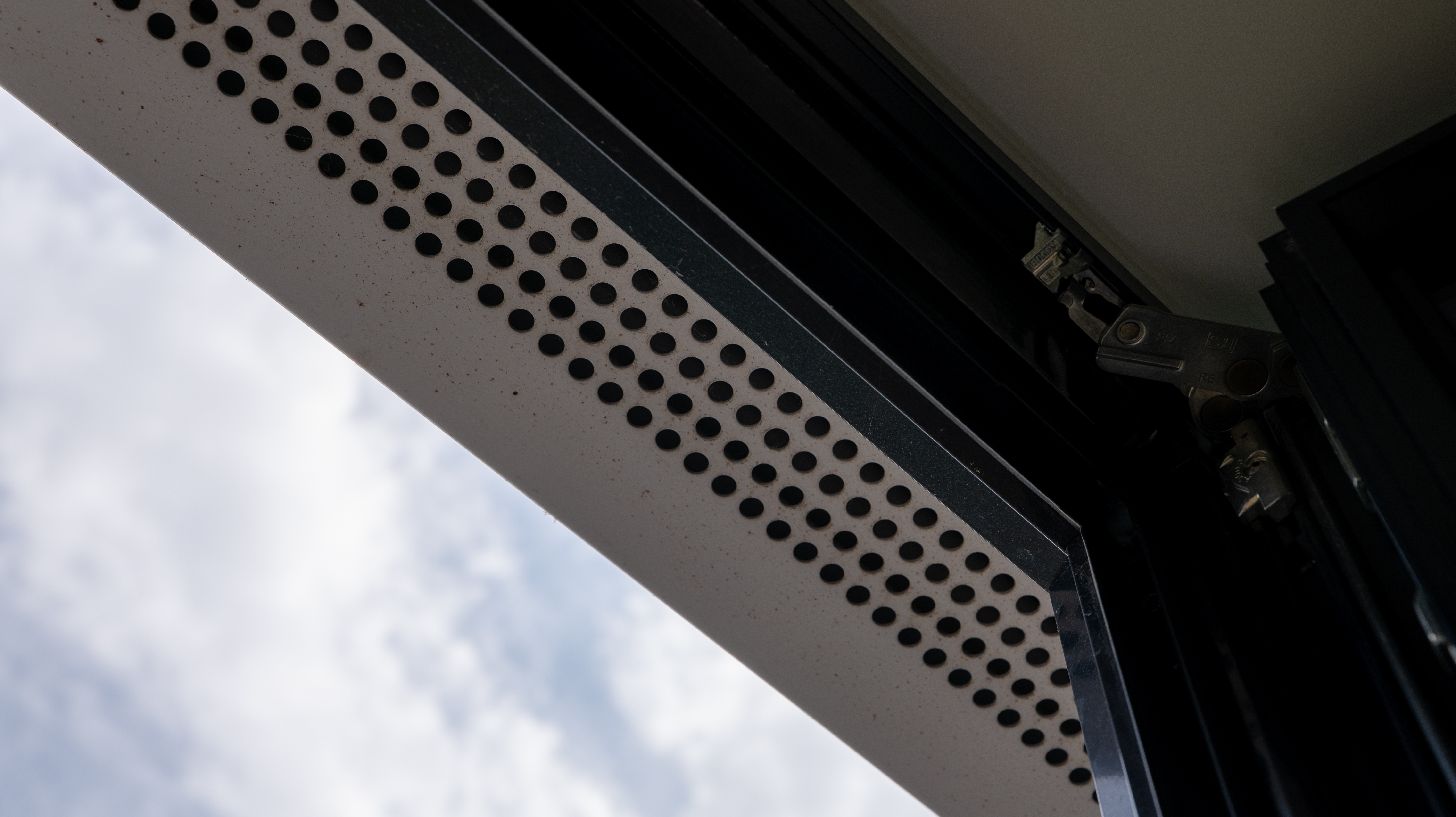 For situations with heavy noise pollution, the DucoMax ZR silencer was deployed. This robust solution is specifically developed for high-rise buildings and heavily noise-polluted environments. With four different installation depths (Corto, Medio, Alto, Largo) and an actively closing aluminium flap that prevents whistling sounds, the DucoMax ZR offers excellent wind and water tightness combined with superior noise dampening.