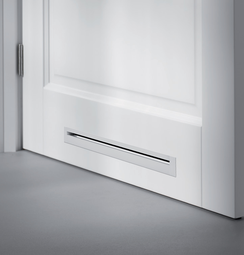 Unlike cracks under the door, the DoorVent thereby avoids draughts and attenuates intrusive noise. The fresh air must be able to circulate freely between the different rooms indoors. So Duco developed the DoorVent, an acoustic feed-through vent that is installed in the internal doors.