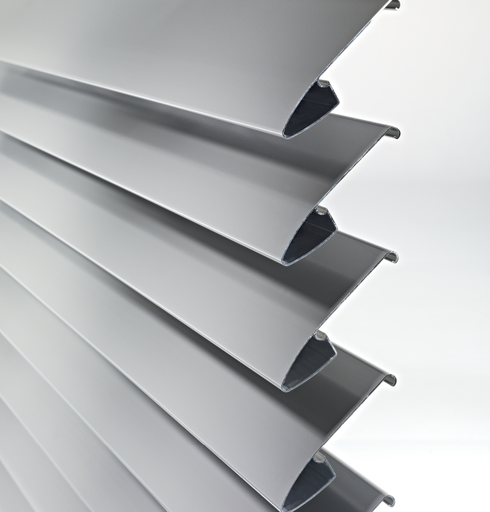 150 CF Series solar shading blades combine the functional advantages of the 95C Series basic blade with the appealing ellipsoid design of the DucoSun Ellips blade. The blades are extremely strong. That's why much larger spans can be covered with fewer support profiles.