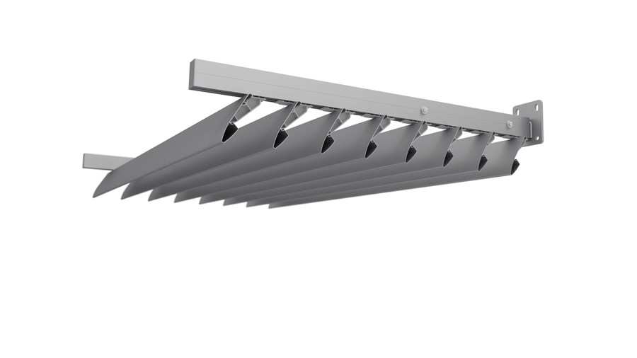 DucoSun 150 CF is an architectural component system featuring fixed solar shading blades. The patented Duco Slide and click system enables quick and straightforward fitting of the solar shading blades to the support system at fixed blade angles.