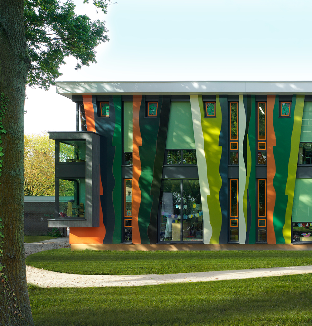 In the words of architect Hans Coppen: "There are thousands of school buildings in the Netherlands; the quality of the air in most of them is poor. Because a fresh and healthy indoor climate should be the natural right of every child and teacher, nature became the guiding theme throughout the work. A rigorous choice was made in favour of natural ventilation so that all rooms always have a continuous supply of fresh air from outside. This results in an optimal and inspiring learning environment in which everyone can perform to the best of his or her ability every moment of the day".