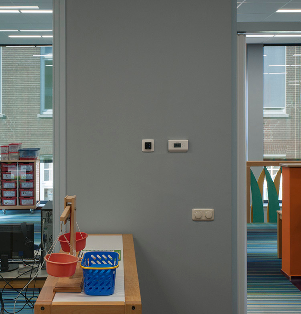 To prevent the risk of pupils losing their concentration due to an increase in the CO2 level and to substantially improve the kids' learning performance, the rooms need a constant supply of fresh air from outside. "That requires a ventilation flow of around 1,000 m3 per room per hour," Hans Coppen tells us. "DUCO therefore designed the TronicTwin 120 for a pressure difference of 5 Pa specifically for this project. That makes the entire ventilation system more robust, more stable and less dependent on weather conditions. What's more, 5 Pa window ventilators offer the advantage that the length can be significantly reduced. Because of the high air speed, smaller window ventilators were desirable, which also allowed them to be better integrated into the façade."