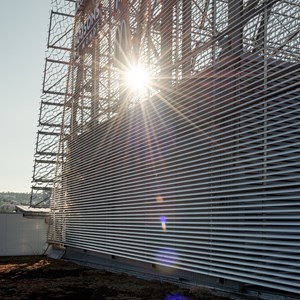 Pavillon STEEL in Saint-Étienne combines spectacular architecture with environmental performance thanks to DUCO's DucoWall Screening system. With 82% less carbon emissions, this continuous louvre wall transforms 70,000 m² of façades into a luminous metallic mesh that breathes innovation.