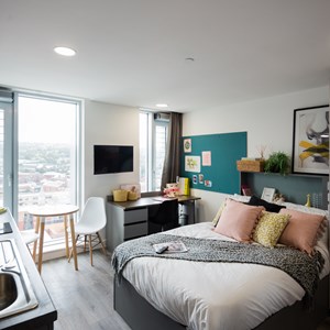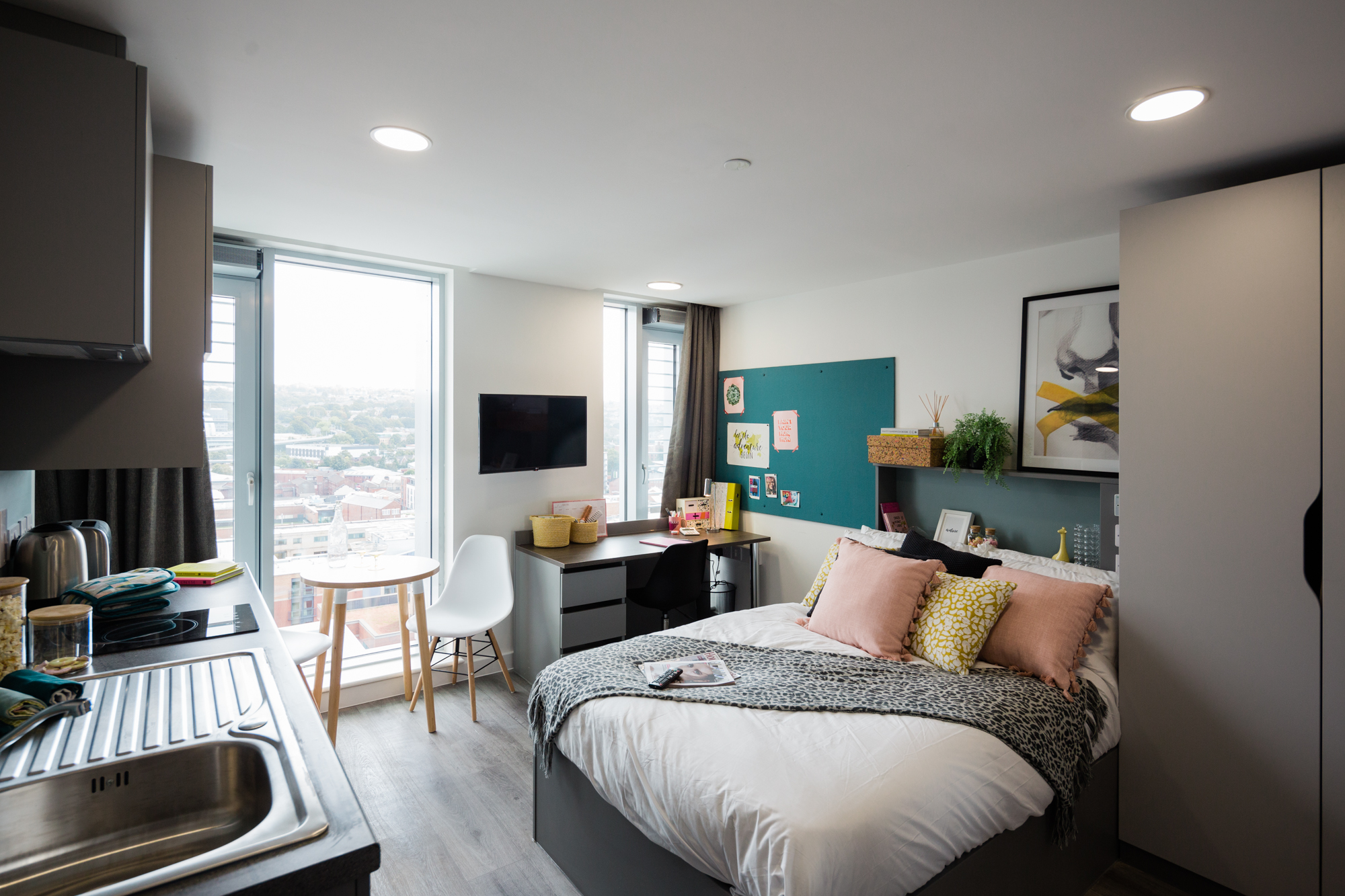 In the heart of the bustling student city of Sheffield, surrounded by a number of busy roads and right next to Sheffield Hallam University, is the brand-new student accommodation - The Gate. Numerous facilities contribute to a pleasant living environment for the 455 students who live there, including a gym, a spacious rooftop terrace with breathtaking views, a cinema room, communal kitchens and study areas.