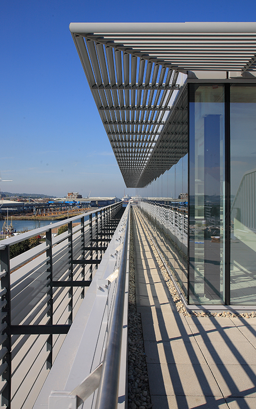 Architectural solar shading contributes to a sleek design in A grade office building Tower Warf