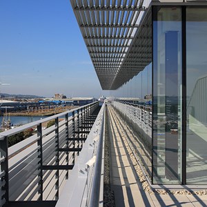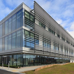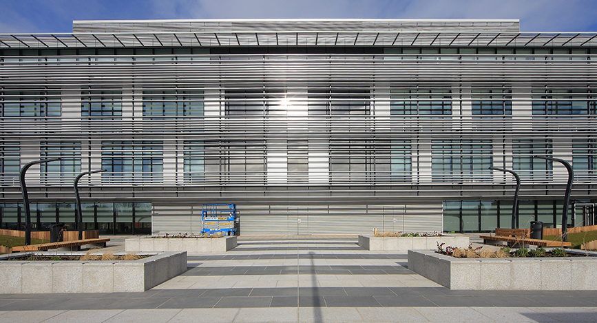 Achitectural solar shading not only keeps out annoying sunrays, but also give the building a sleek look. The DucoSun Cubic with its rectangular louvre blades contribute to the linear aesthetics that the architect had in mind. The carefully designed and positioned structure ensures the desired compromise of allowing in enough natural daylight whilst at the same time reducing screen glare and solar gain to ensure a comfortable indoor environment. An optimal combination of design and functionality.