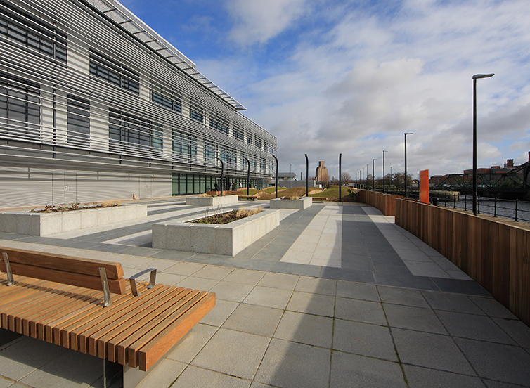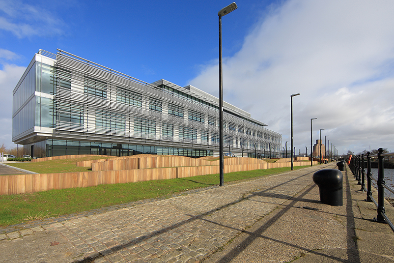 The Tower Warf in Liverpool was to become an eye-catcher in terms of sustainability. The four-storey building covers an area of no less than 48,000 m2. Located in the Wirral Dock system directly on the banks of the Mersey, the A grade office building kicks off the new enterprise zone of the Wirral Waters Regeneration project with style. An excellent BREEAM assessment was immediately the goal to be achieved.