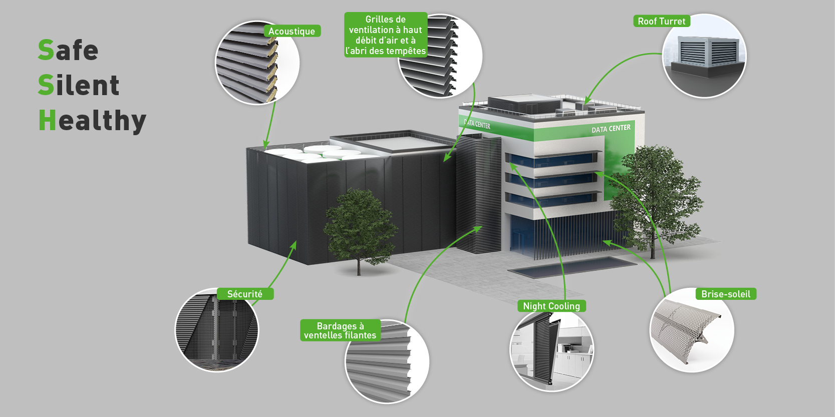 DUCO sera également présent avec des solutions de ventilation performantes et haut de gamme, telles que des murs à lamelles, garantissant une ventilation naturelle efficace de l'espace intérieur des centres de données.