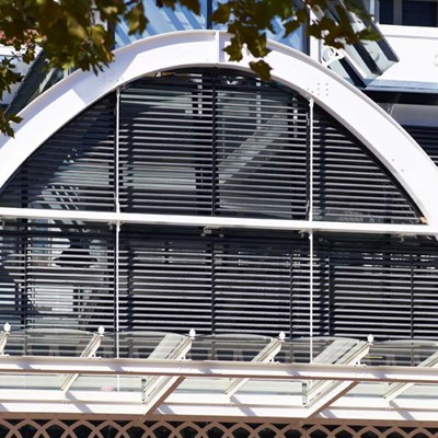 Lors de la conception, on s’est essentiellement penché sur l’incidence de la lumière naturelle. La halle de marché baigne dans la lumière naturelle du soleil, mais celle-ci n’a pas le champ libre à l’intérieur afin d’éviter tout effet de serre. Grâce à la protection solaire structurelle de DUCO, incarnée par les panneaux coulissants DucoSlide Linear 55 esthétiques, la chaleur du soleil est maintenue à l’extérieur, tout en laissant encore suffisamment de lumière naturelle entrer.