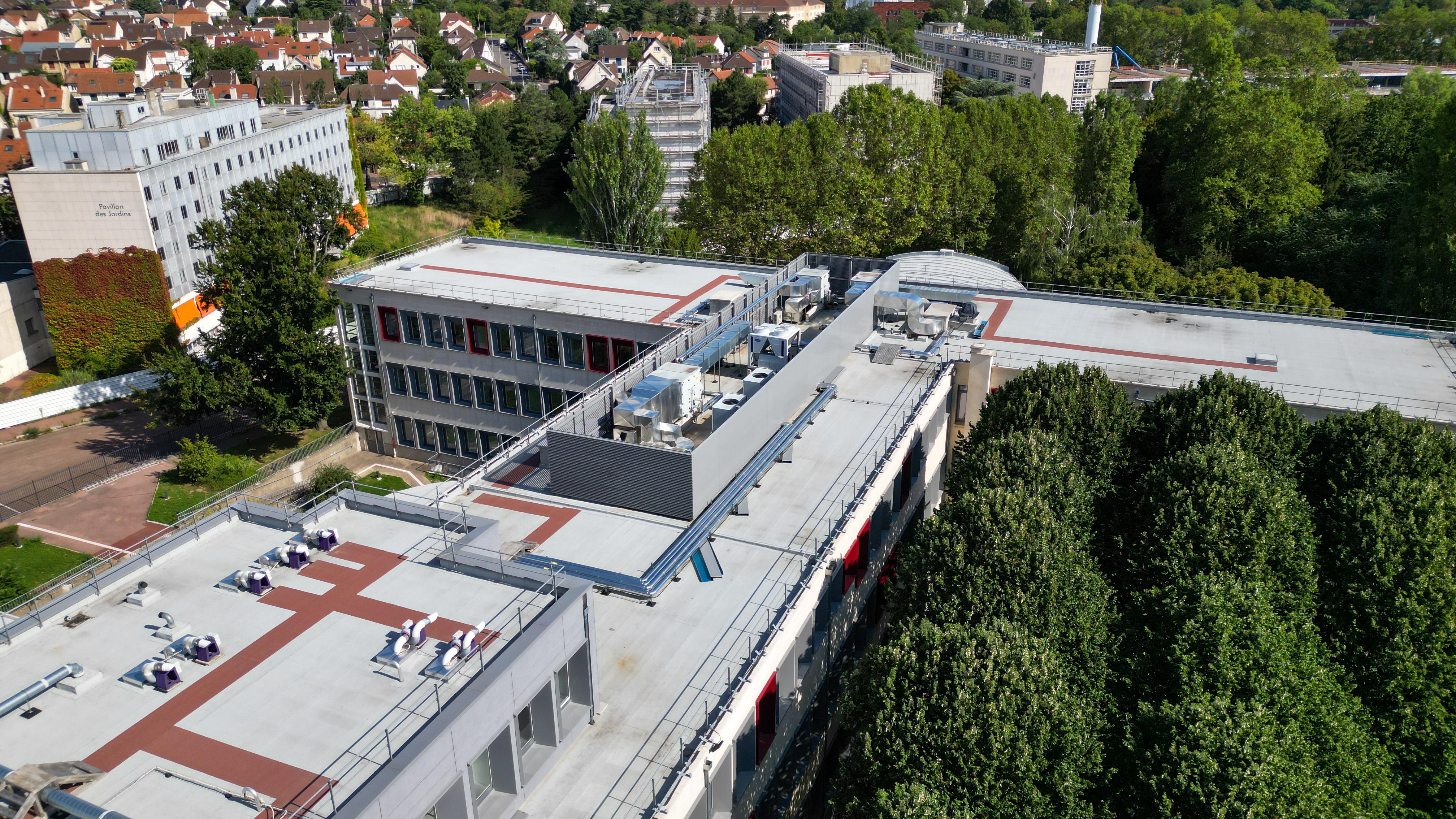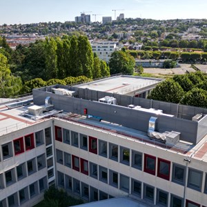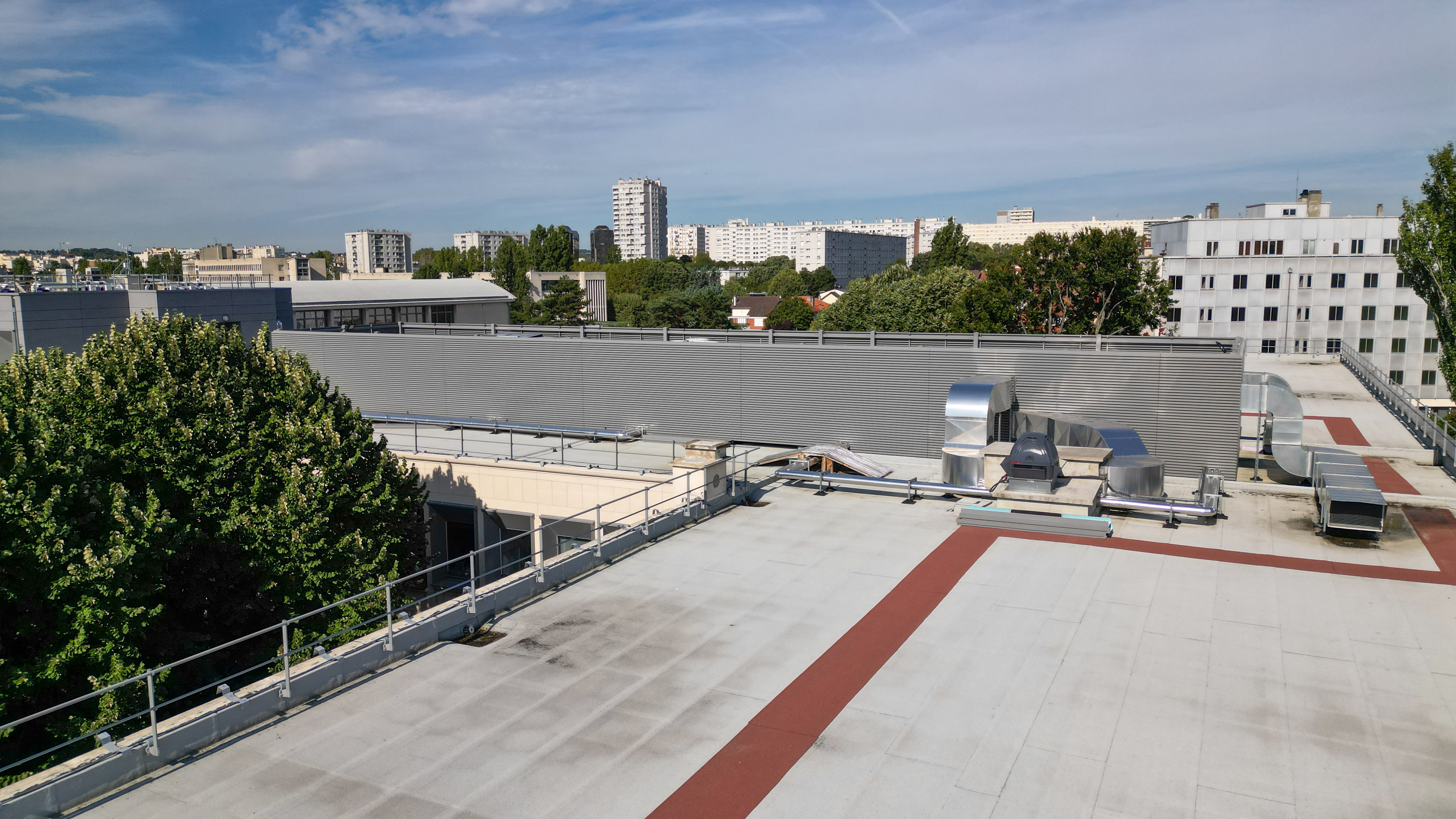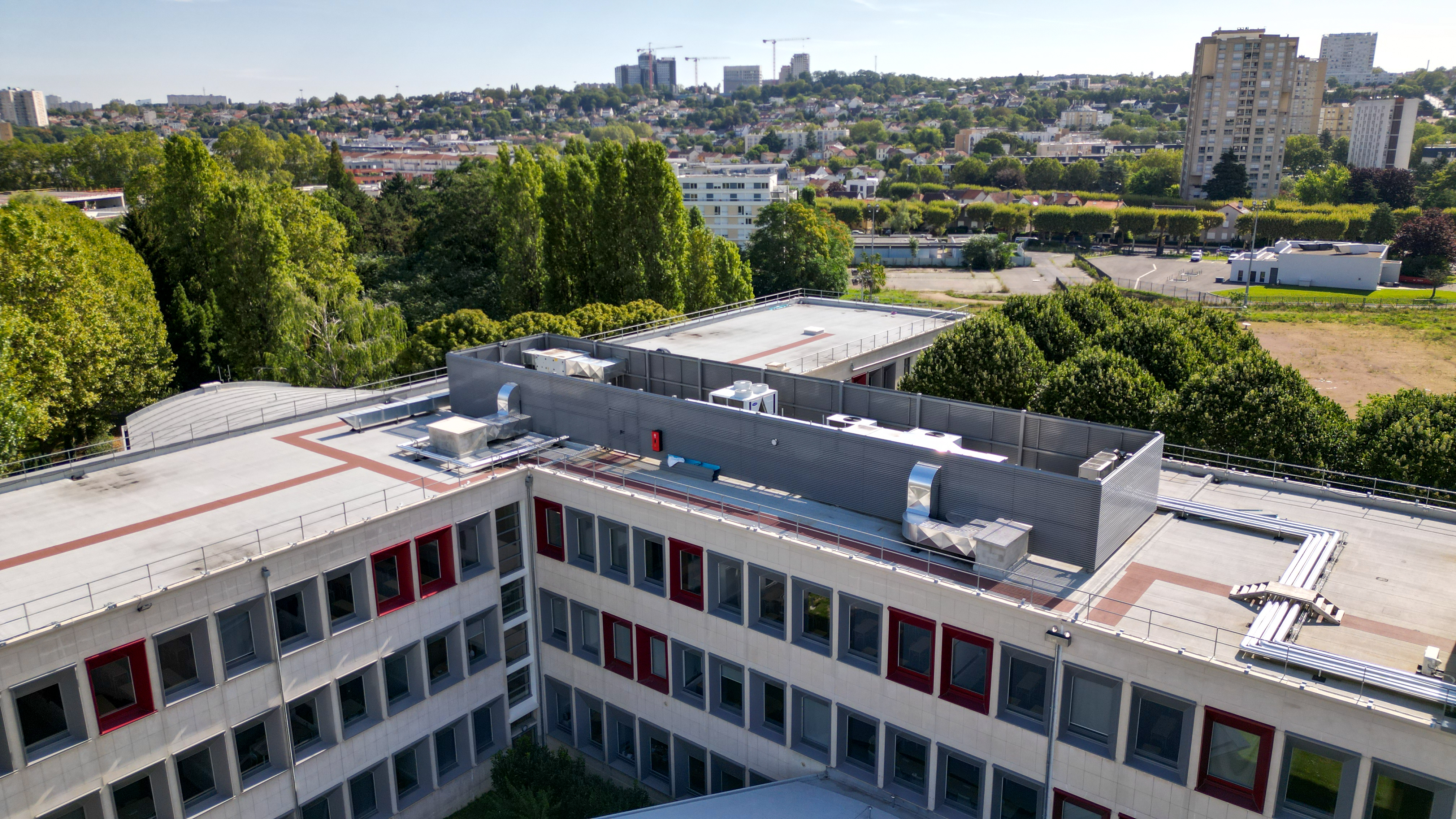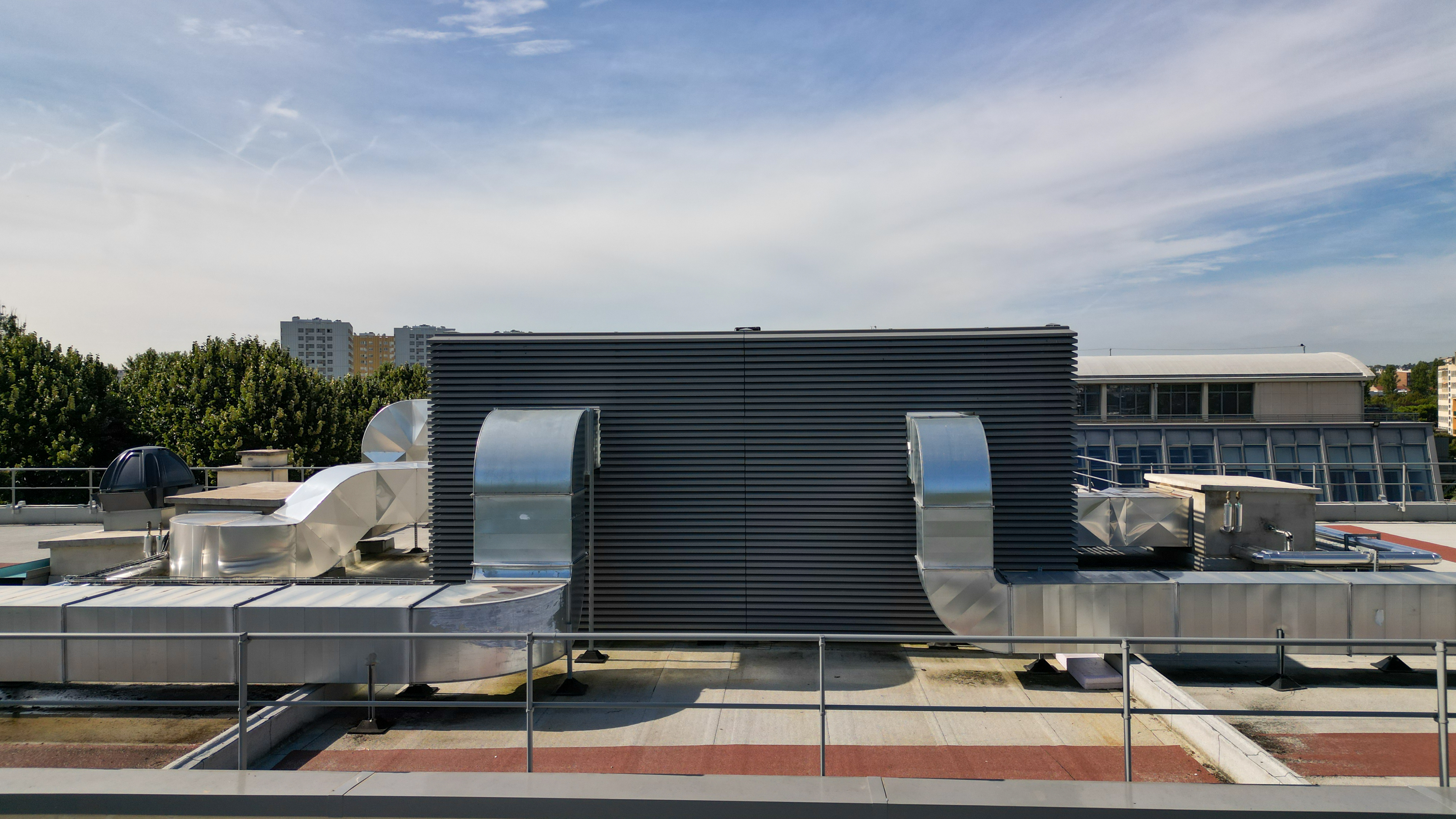 Le tout est monté sur une ossature porteuse en acier galvanisé. Ce pare-vue esthétique permet à la zone technique de l’EPF Cachan de se fondre harmonieusement dans la silhouette du bâtiment, en toute discrétion.