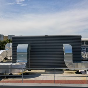 Pour habiller la zone technique du bâtiment, le choix s'est porté sur l'utilisation des lames DucoWall Screening 70. Ces lames limitent au mieux le vis-à-vis, elles sont excellentes en guise de pare-vue.