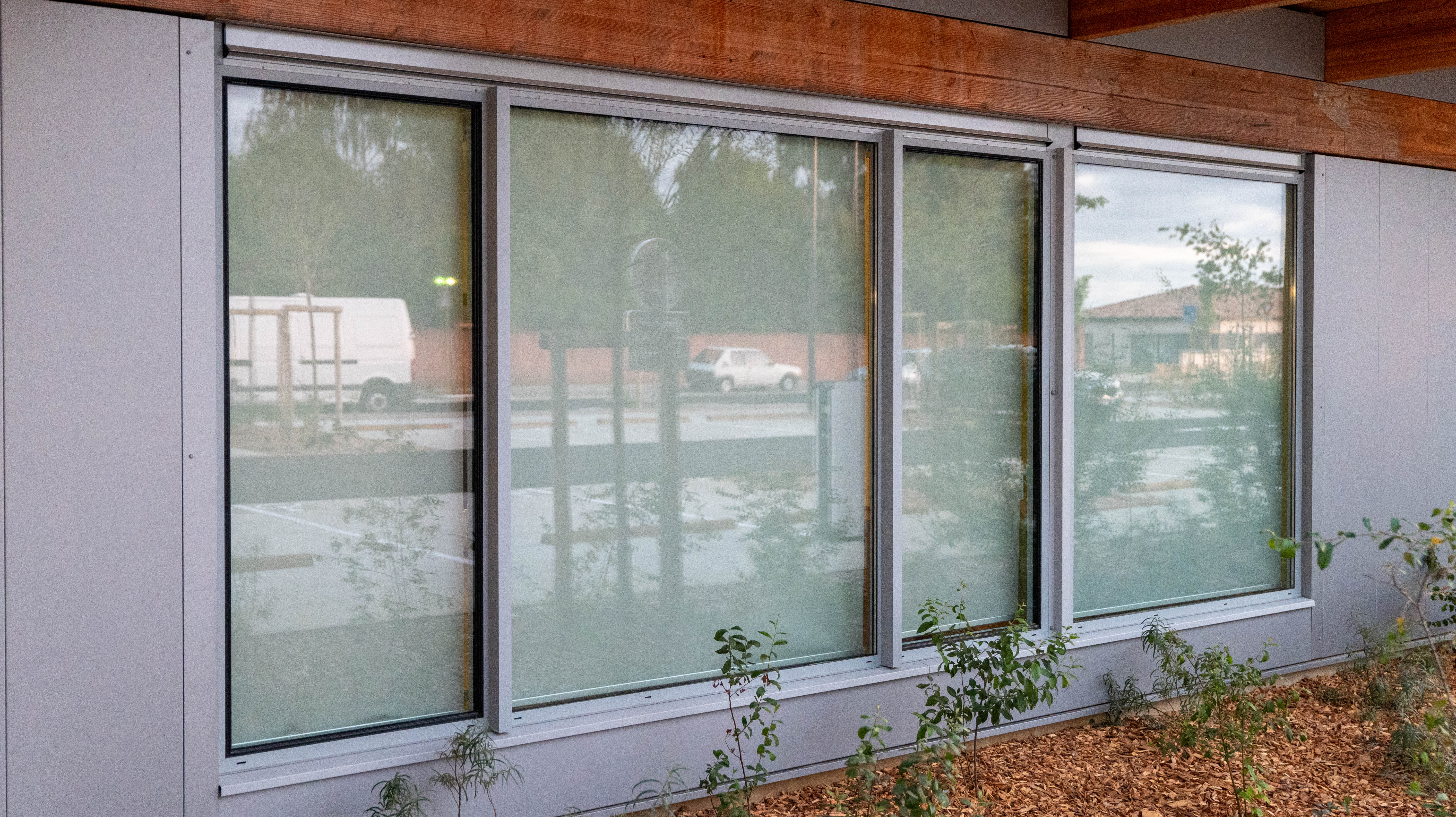 Pour garantir une ventilation naturelle efficace tout en préservant une isolation phonique optimale, les aérateurs isophoniques DucoMax ZR ont été installés. Spécialement conçus pour les environnements soumis à des nuisances sonores élevées, ces aérateurs autoréglables assurent une circulation d'air optimale sans compromettre le confort acoustique des classes.