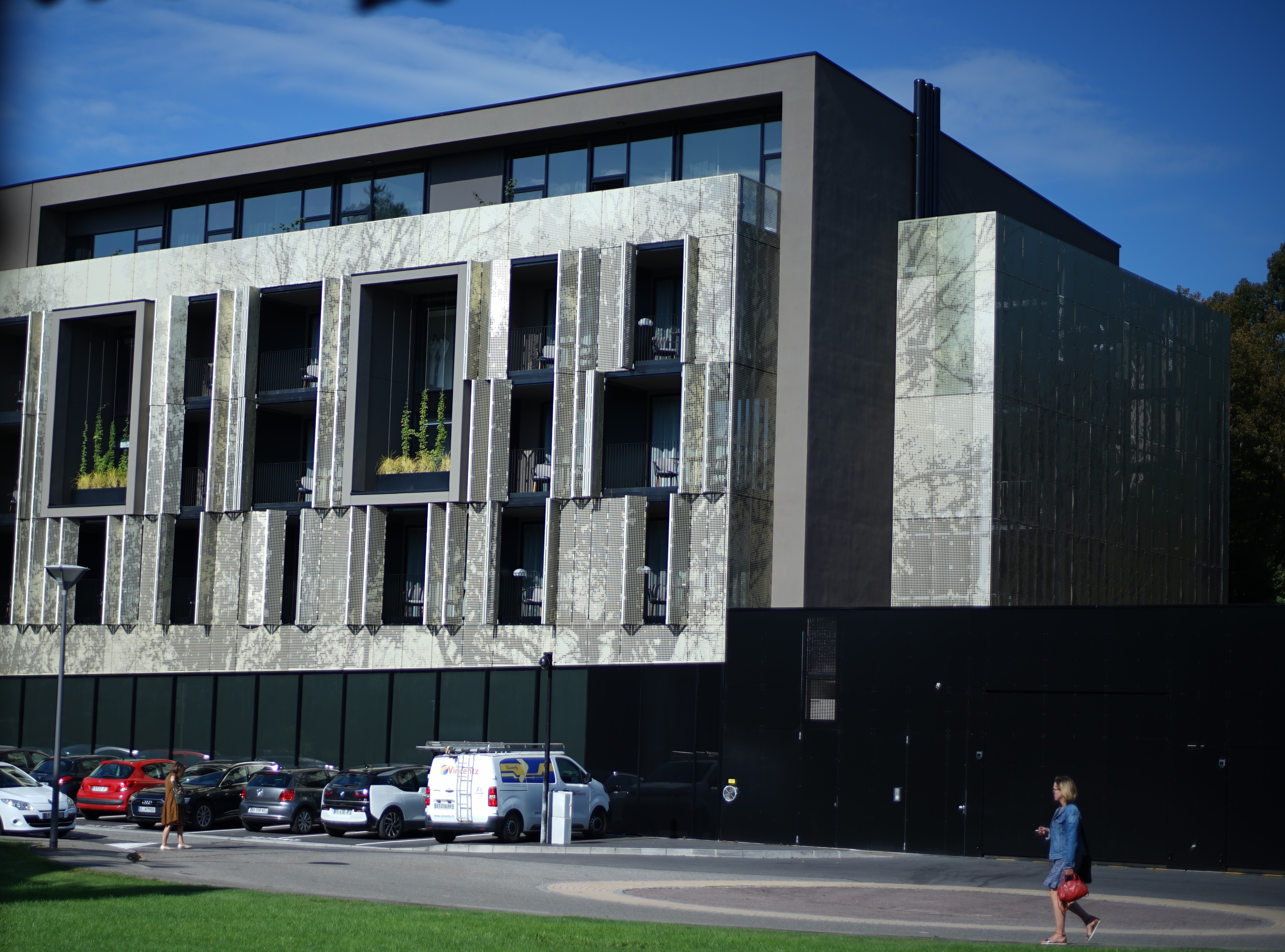 Implanté dans le parc du Champ de Mars,au centre de Colmar, l’ établissement de luxe L’Esquisse Hotel & Spa à Colmar est un complexe regorgeant d’innovations technologiques. Pour la mise en œuvre de la protection solaire sur la façade, le bureau d’architectes AEA Architectes à Strasbourg, a été chargé de la conception, en tenant compte de nombreux facteurs d'économie d'énergie. Pour éviter la surchauffe, on a  utilisé le système DucoSlide Quadrafold de DUCO, le spécialiste de la ventilation et de la protection solaire.