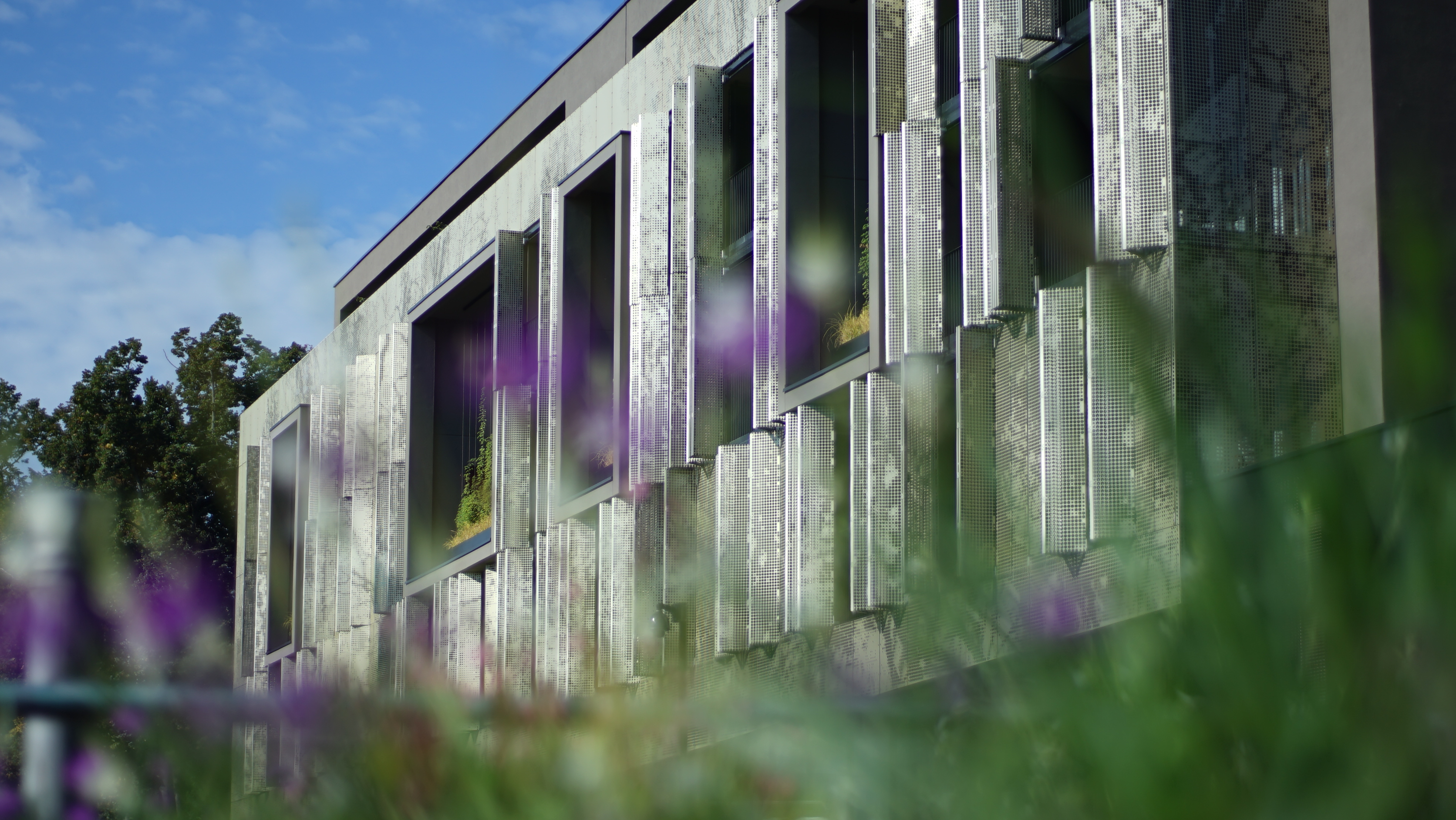 L’architecture de l’hôtel s’est invitée dans un cadre exceptionnel avec la projection de larges terrasses pour chaque chambre, suite et appartement. Grâce au DucoSlide Quadrafold les rayons du soleil sont filtrés, ce qui permet de voir sans être vu.  En effet, les volets sont équipés de tôles d’aluminium spécifiques anodisées « or », ces tôles étant perforées afin de créer une fresque originale représentant une forêt, ce qui ajout au facteur esthétique et ce qui fait que l’hôtel s’intègre parfaitement dans le cadre verdoyant qui l'entoure.