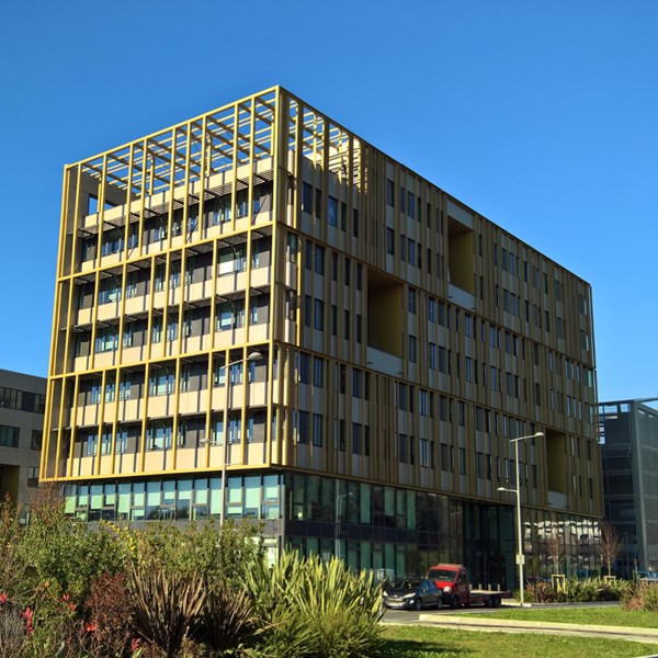 Le système de facede DucoWall classique W 35V fait partie de ce bâtiment universitaire efficace en énergie.