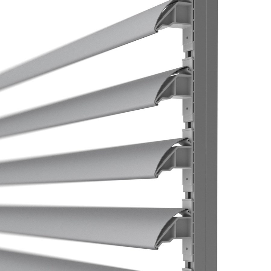 Les DucoSun 100 C sont des systèmes à composants architecturaux composés de lames fixes en forme de C. Les lames brise-soleil viennent se fixer rapidement et facilement sur l'ossature porteuse selon un angle d'inclinaison fixe par le système Glisser-Cliquer breveté par DUCO.