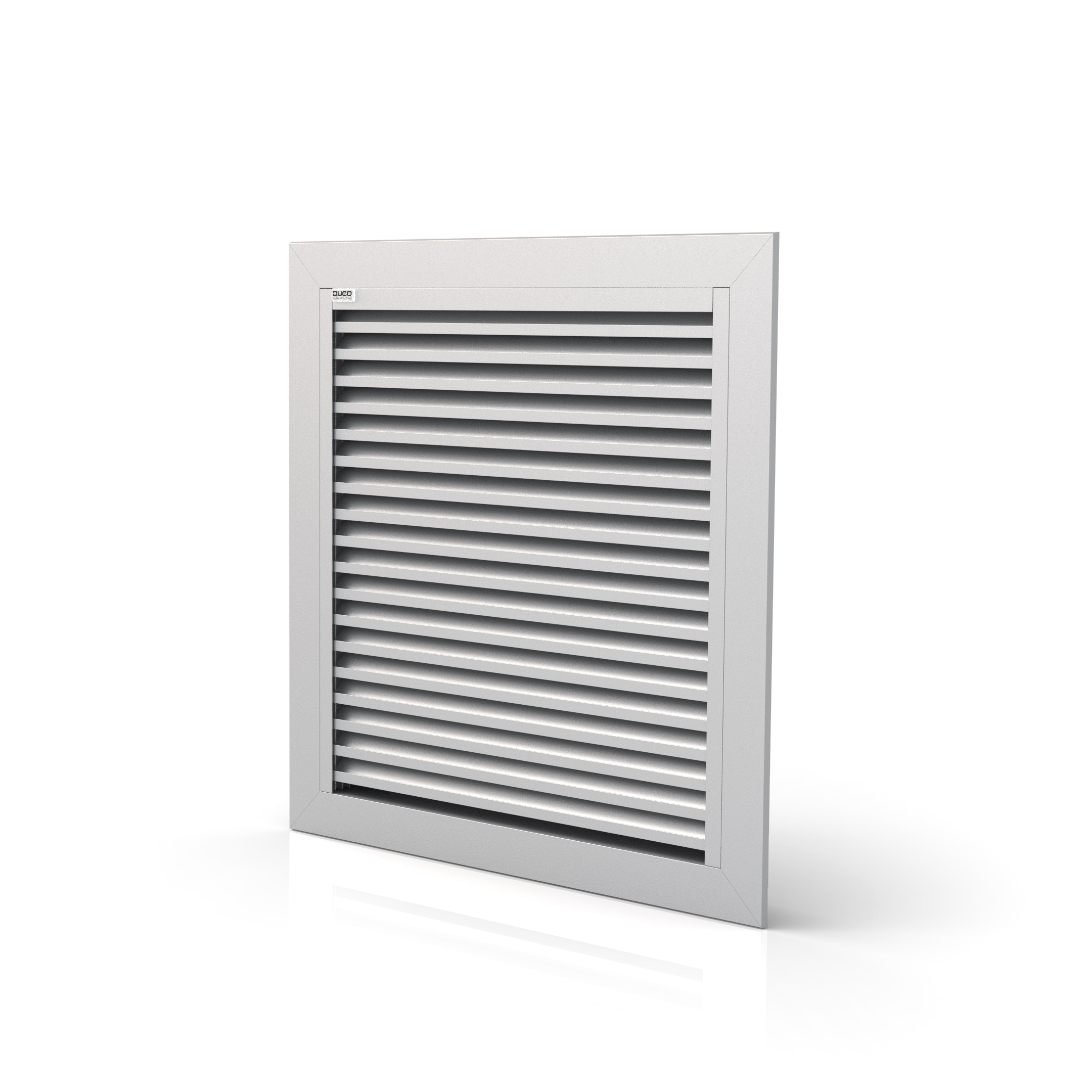 La DucoGrille Classic 60HP a été spécialement conçue pour la ventilation intensive. La forme unique de ces lames « Haute Performance » à faible facteur de résistance assure une étanchéité à l'eau exceptionnelle (classe A). Tous les modèles sont réalisés à l'aide de profilés extrudés en aluminium. Une moustiquaire est prévue par défaut.