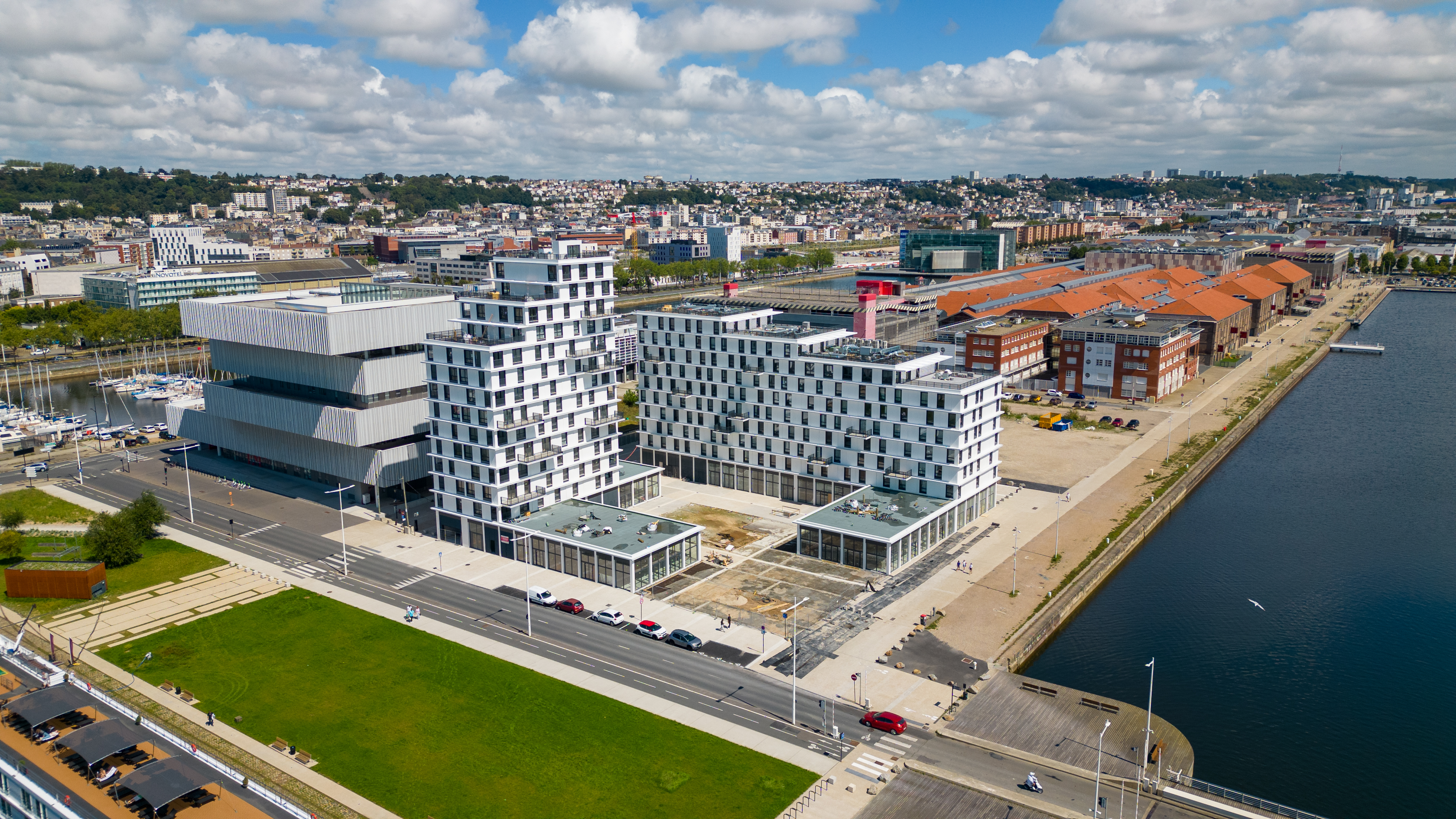 Les Quais en Seine au Havre est un lieu complètement entouré du Havre. Il est situé au bout de la presqu’île Frissard, à proximité immédiate des bassins Vauban, Vatine et de l’Eure, au contact de plusieurs établissements d’enseignement supérieur du campus de centre-ville en devenir. Les ingrédients ici réunis ont nourri l’imagination des concepteurs du projet qui ont choisi de créer un ensemble parfaitement adapté au potentiel étudiant et événementiel du quartier : deux résidences, l’une étudiante, l’autre de tourisme, verront ainsi le jour ainsi qu’un immeuble d’habitation de plus grande hauteur qui pourra servir de « signal » architectural.