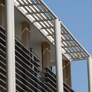 Lors de la rénovation du bâtiment principal de l’Institut d’Administration des Entreprises Aix-en-Provence à Purycard, il a été choisi des lames brise-soleil DucoSun Cubic 200 Unifit pour habiller la façade de l’Institut. Les lames brise-soleil ont un impact important sur le climat intérieur. Le choix du type de lames doit donc se faire en fonction de l'orientation de la façade et de la position du soleil.
