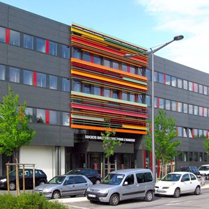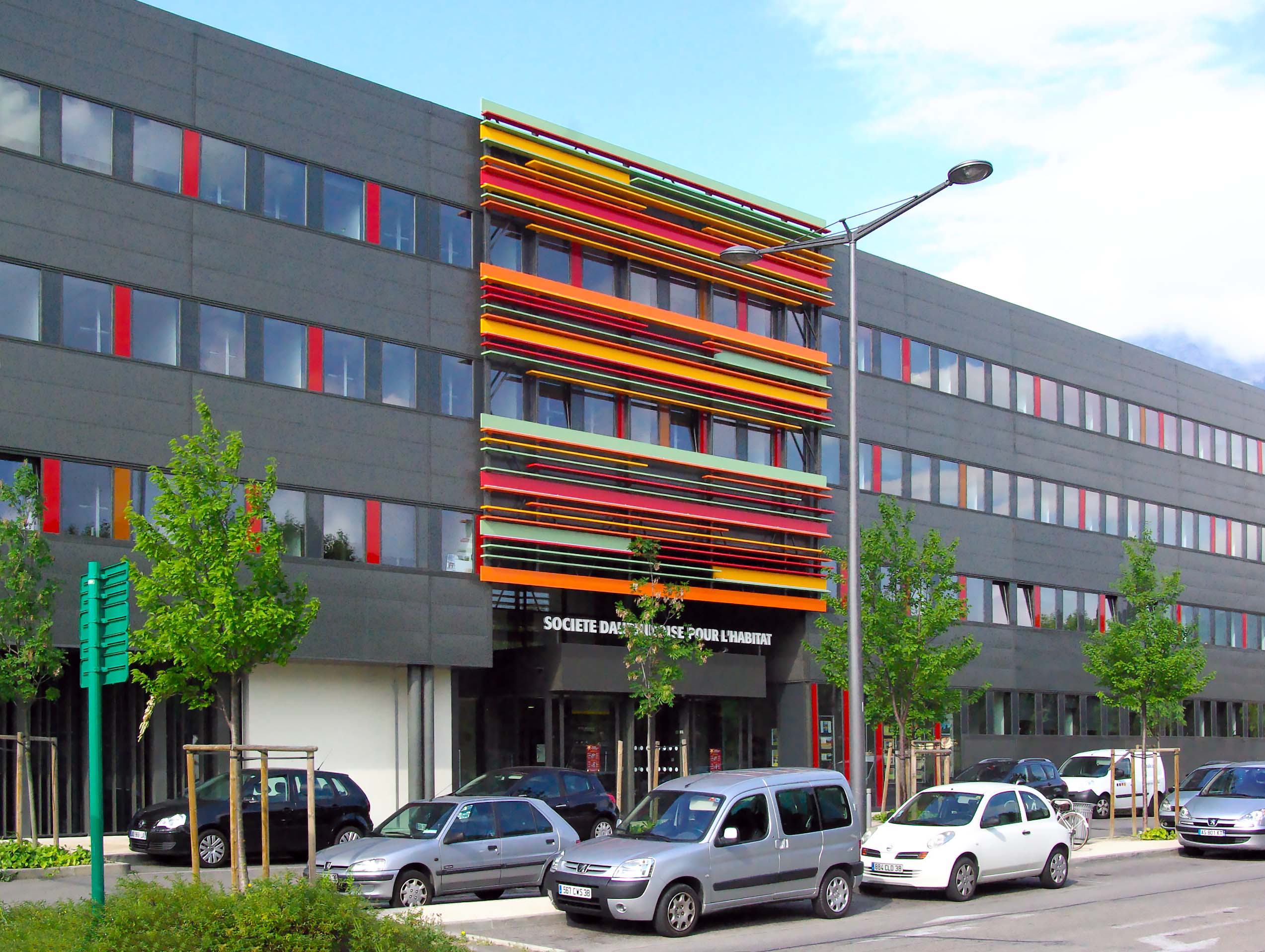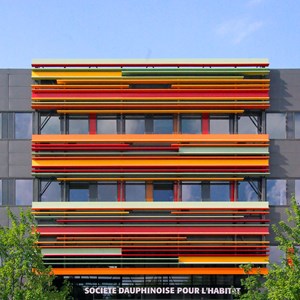 DUCO a prévu le bâtiment de 'La Société Dauphinoise verser l'habitat' à Echirolles d'un système solaire créatif du type DucoSun Cubic. Ce système assure une façon naturelle et économe en énergie que la lumière du soleil ne reçoit pas une chance de chauffer directement les bureaux, sans perte de lumière du jour.