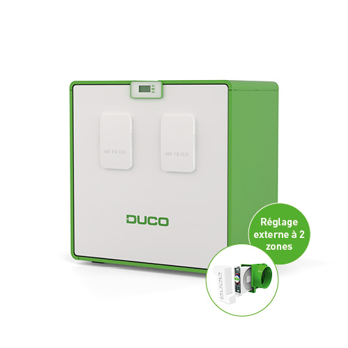 Il est également possible d'envisager un système de ventilation mécanique avec récupération de chaleur ou VMC double flux pour améliorer l'efficacité. Dans le cas d'une VMC double flux, l'appareil fournit mécaniquement de l'air frais à l’habitation et évacue mécaniquement l'air pollué de l’habitation à l'aide de ventilateurs intégrés. Dans ce système, il y a récupération de la chaleur de l'air évacué et cette chaleur est transférée à la prise d’air. Votre maison reste ainsi bien ventilée sans préjudice de la consommation d'énergie.