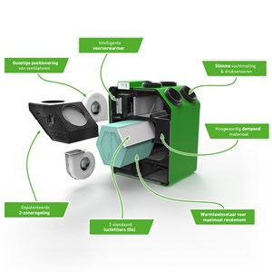 Les économies d'énergie deviennent un facteur de plus en plus important et les maisons passives économes en énergie et les maisons Q-Zen feront de plus en plus souvent partie de notre quotidien. Dans la lutte contre le renforcement du niveau E, la DucoBox Energy Premium constitue une arme importante comme unité de ventilation équilibrée avec récupération de chaleur.