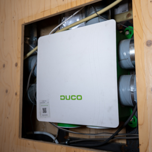 Om een gezond binnenklimaat te garanderen, wordt systeem C toegepast. Met de DucoBox Focus wordt vervuilde lucht in elke ruimte vraaggestuurd afgevoerd. In combinatie met de Tronic-versie van de TopVent CK wordt ook de natuurlijke toevoer van verse lucht per ruimte continu geregeld. Dit is essentieel voor een gezond binnenklimaat in de woningen en voorkomt onnodig energieverlies.