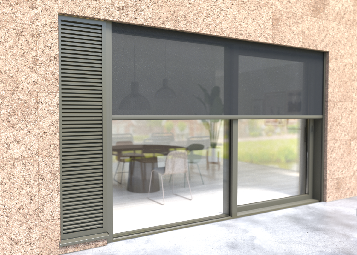 Hoe werkt het? Overdag houdt automatisch gestuurde doekzonwering de warmte buiten, terwijl ‘s nachts koele buitenlucht automatisch naar binnen stroomt via slimme ventilatieluiken zoals de DucoGrille Close 105. Alles wordt gestuurd door de Duco IntelliHub op basis van de real-time gegevens van het weerstation op het dak.