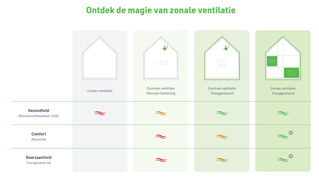 Naast je woning te voorzien van een optimale luchtkwaliteit, voorkomt zonale ventilatie ook energieverspilling. Dit doordat er alleen wordt geventileerd waar en wanneer dat nodig is. Bovendien kan het het geluidsniveau in huis tot 30% verminderen, wat zorgt voor een beter bewonerscomfort.