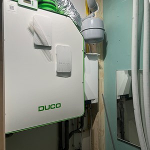 Het appartement is uitgerust met de DucoBox Energy Premium, compleet met een 2-zoneklep en vocht- en CO2-sensoren. "Het 2-zone systeem sprak me enorm aan", zegt Thomas. "Waarom zou je slaapkamers ventileren als daar overdag niemand is? Dit systeem ventileert de woonruimtes overdagen schakelt 's avonds over naar de slaapkamers. Ook heb ik het systeem voorzien van meerdere CO2-sensoren en een vochtsensor, zodat er wordt geventileerd op basis van bezetting en vochtigheid."