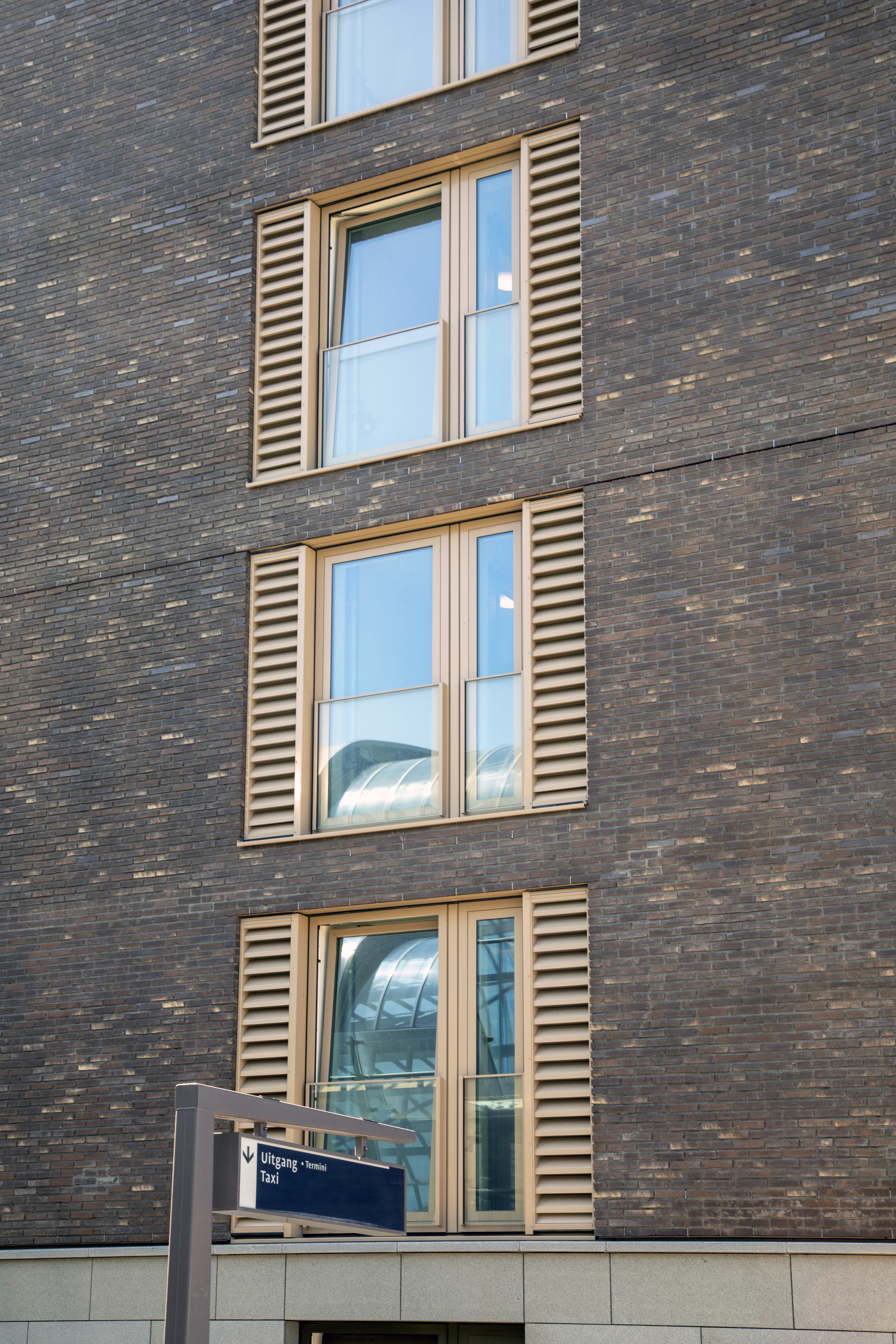 Gelukkig is er de oplossing: de Duco Acoustic Panel. Dit inbouw muurrooster, op maat gemaakt, dempt geluid tot wel 17dB dankzij speciale geluiddempende minerale wol die daarbovenop ook brandwerend is. De unieke eigenschappen van het Duco Acoustic Panel bieden een perfecte balans tussen functionaliteit en esthetiek. Doordat ze op maat worden gemaakt, integreren ze naadloos met de raampartijen van de nieuwe woningen in Gare Du Nord. Deze onopvallende maar doeltreffende toevoeging zorgt voor een uniform en strak gevelbeeld, terwijl het de akoestiek binnen optimaliseert.