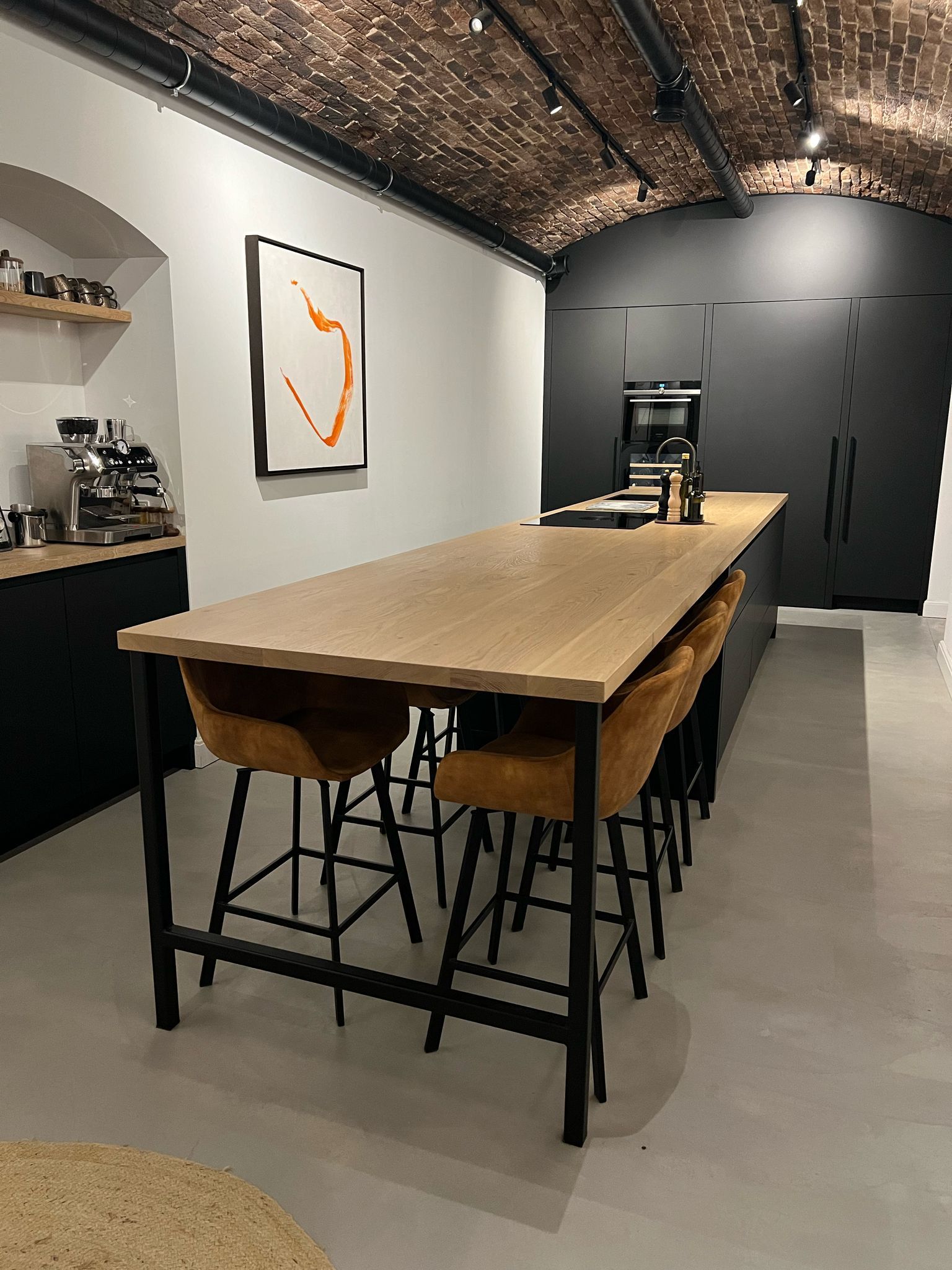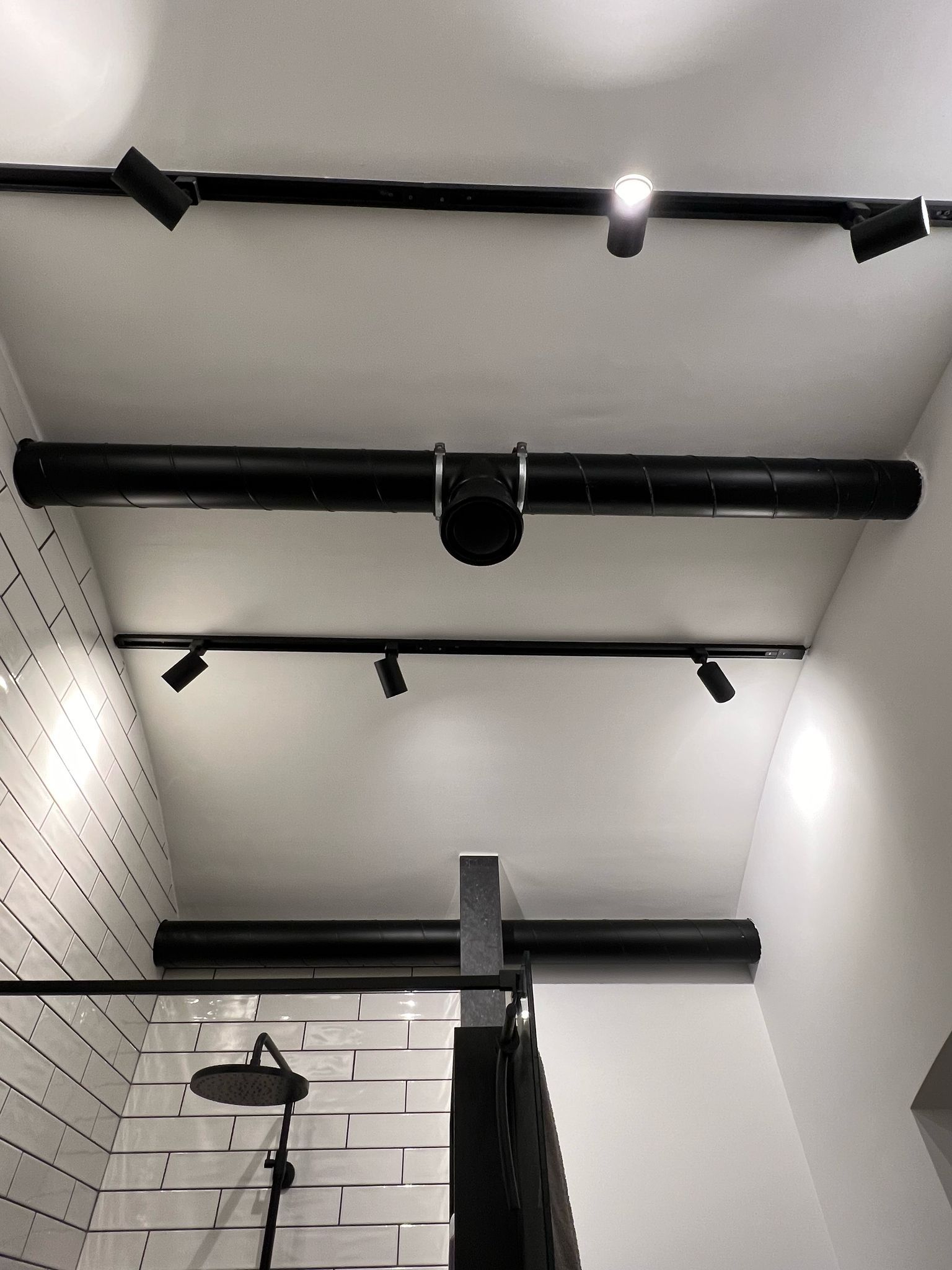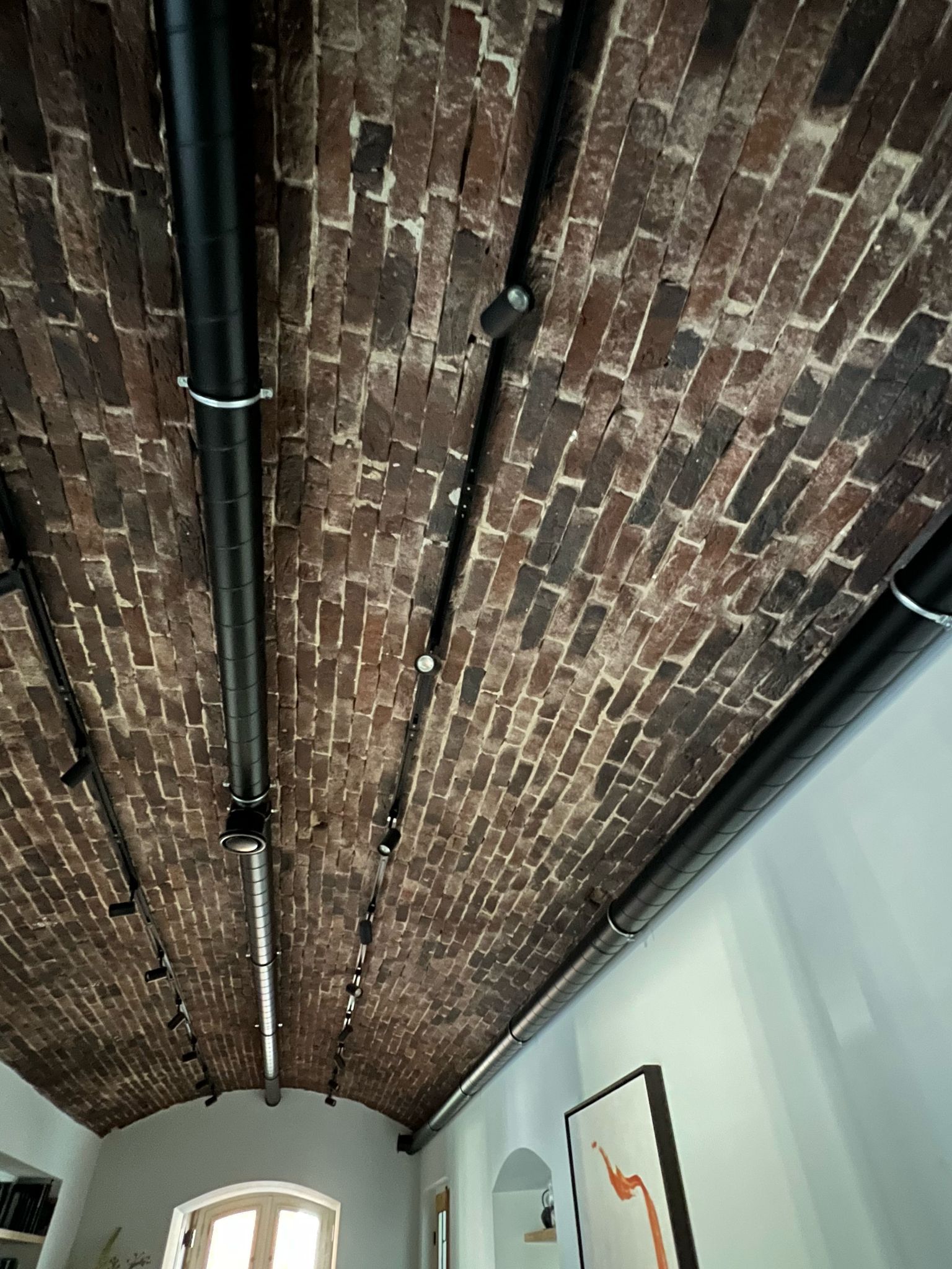 De installatie verliep soepel. Samen met Technisch-Commercieel adviseur Wouter Meeuws werd gekeken waar de kanalen moesten komen, hoeveel capaciteit er nodig was en waar de luchttoevoerpunten het beste konden zitten. In de stijlvol ingerichte loftwoning werd gekozen voor een strakke opbouwinstallatie met zwart kanaalwerk – perfect passend bij het industriële interieur.