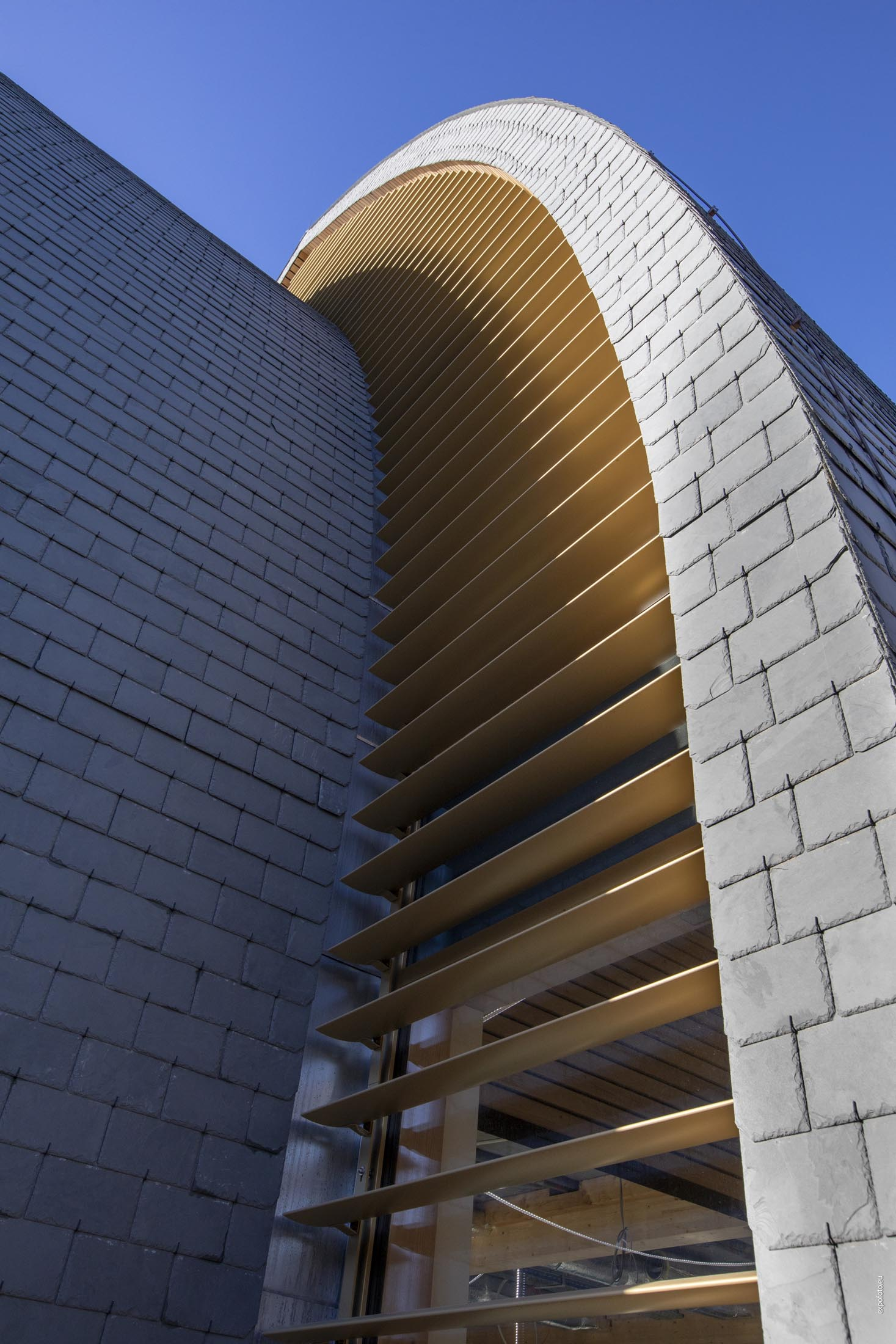 De elegante, ellipsvormige lamellen zorgen voor een dynamisch gevelbeeld dat naadloos aansluit op het moderne ontwerp van de uitbreiding. Bij de Marktpleinkerk zijn DucoSun Ellips 200-lamellen toegepast. Deze aerodynamische lamellen bieden een optimale balans tussen daglichttoetreding en zonnewarmtereductie. Ze reflecteren zonlicht effectief, zijn vervaardigd uit duurzaam aluminium en vereisen weinig onderhoud.