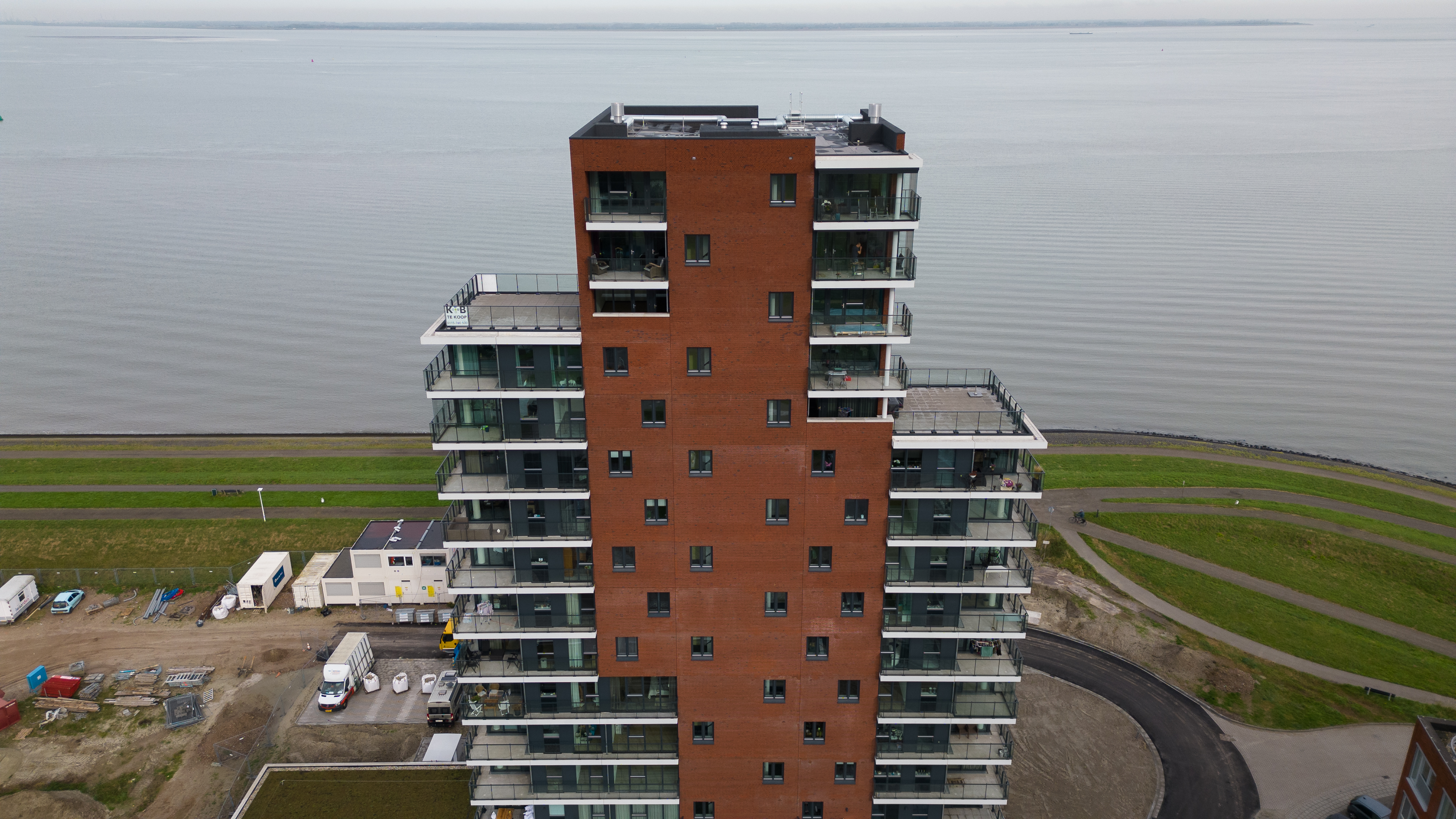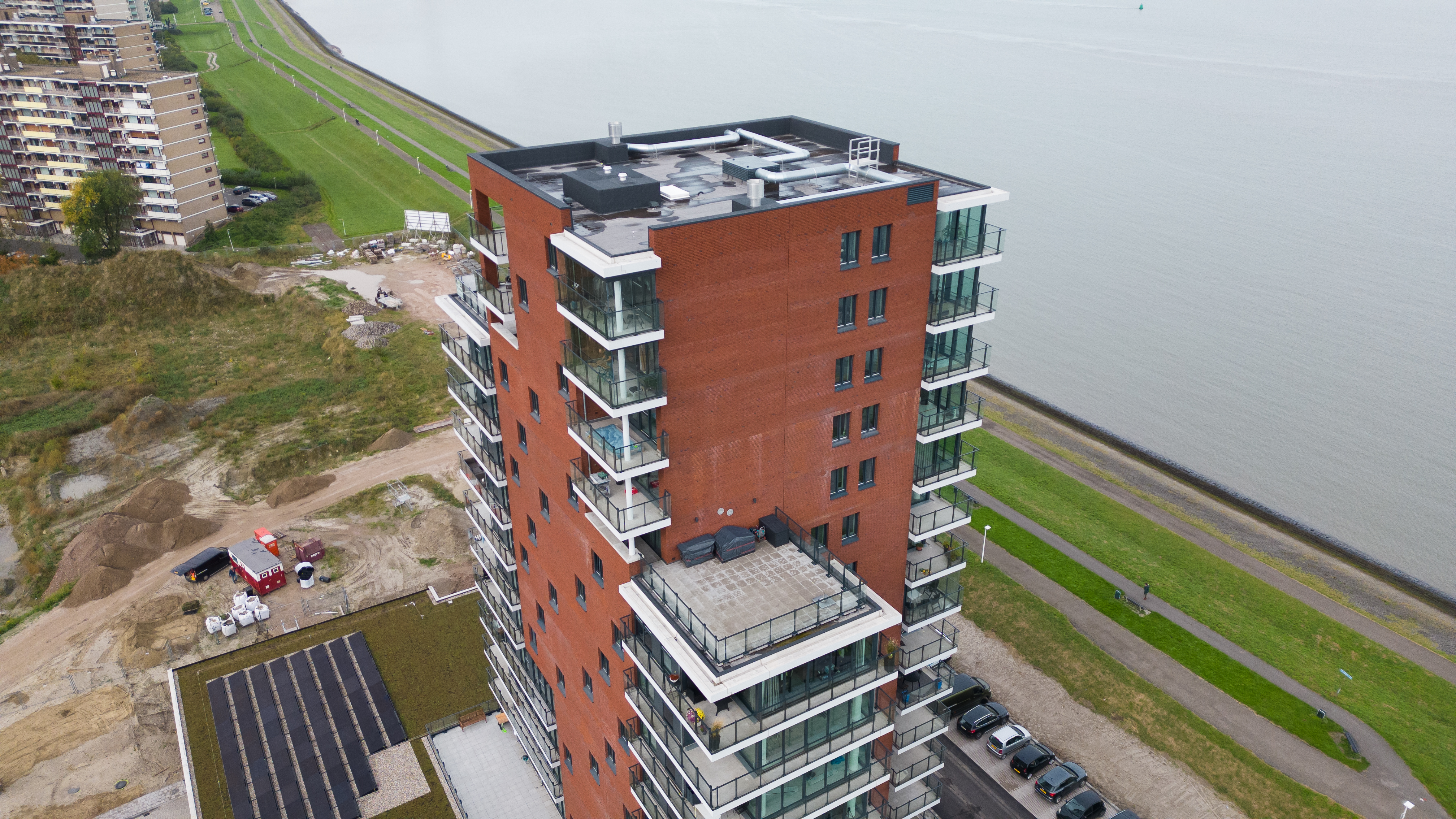 Een woontoren van 13 lagen en niet minder dan 48 appartementen van een hoger segment op nog geen 100 meter van het water. Op ventilatievlak is dit een uitdagend project. Installatiepartij Croonwolter&Dros ging de uitdaging aan en dat met WTW-units van het type DucoBox Energy Premium.