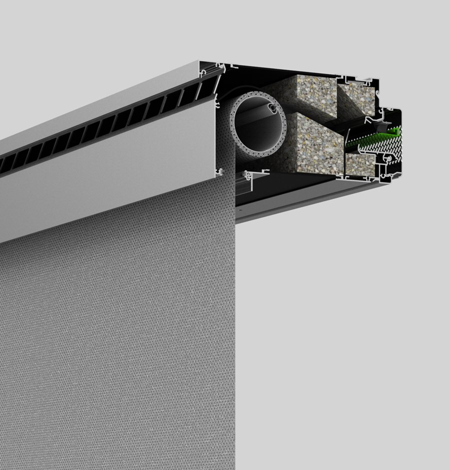 DucoTwin 120 ‘ZR’ combineert natuurlijke ventilatie en buitenzonwering in één systeem. Dit systeem heeft standaard akoestisch dempingmateriaal en is in een extra akoestische versie uitgevoerd. Dit maakt het geschikt voor projecten waar sprake is van lichte of zware geluidsbelasting.