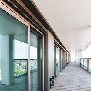 Up Mountain is een appartementengebouw met exclusieve nieuwbouwappartementen, gerealiseerd bovenop de nieuwe parkeergarage van Hudson’s Bay. Met ruime, omgaande balkons en een schakering aan grote terrassen verheft dit woongebouw zich als een dynamisch bergdorp boven het winkelgebied. De gevels met grote glaspartijen zijn voorzien van aluminium kozijnen en triple-beglazing. Om een aangenaam binnenklimaat te creëren, kon een intelligent ventilatiesysteem niet ontbreken. De ontwikkelaar koos heel bewust voor een vraaggestuurd natuurlijk ventilatiesysteem.
