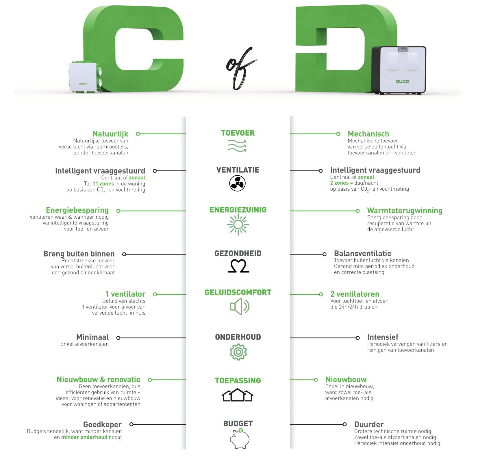 Wat is het beste voor mijn huis, ventilatiesysteem C of D?