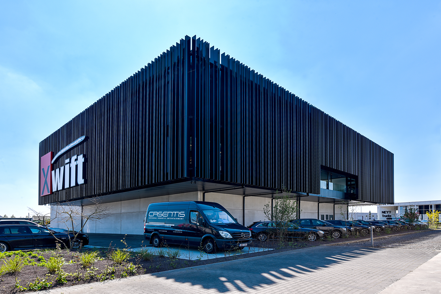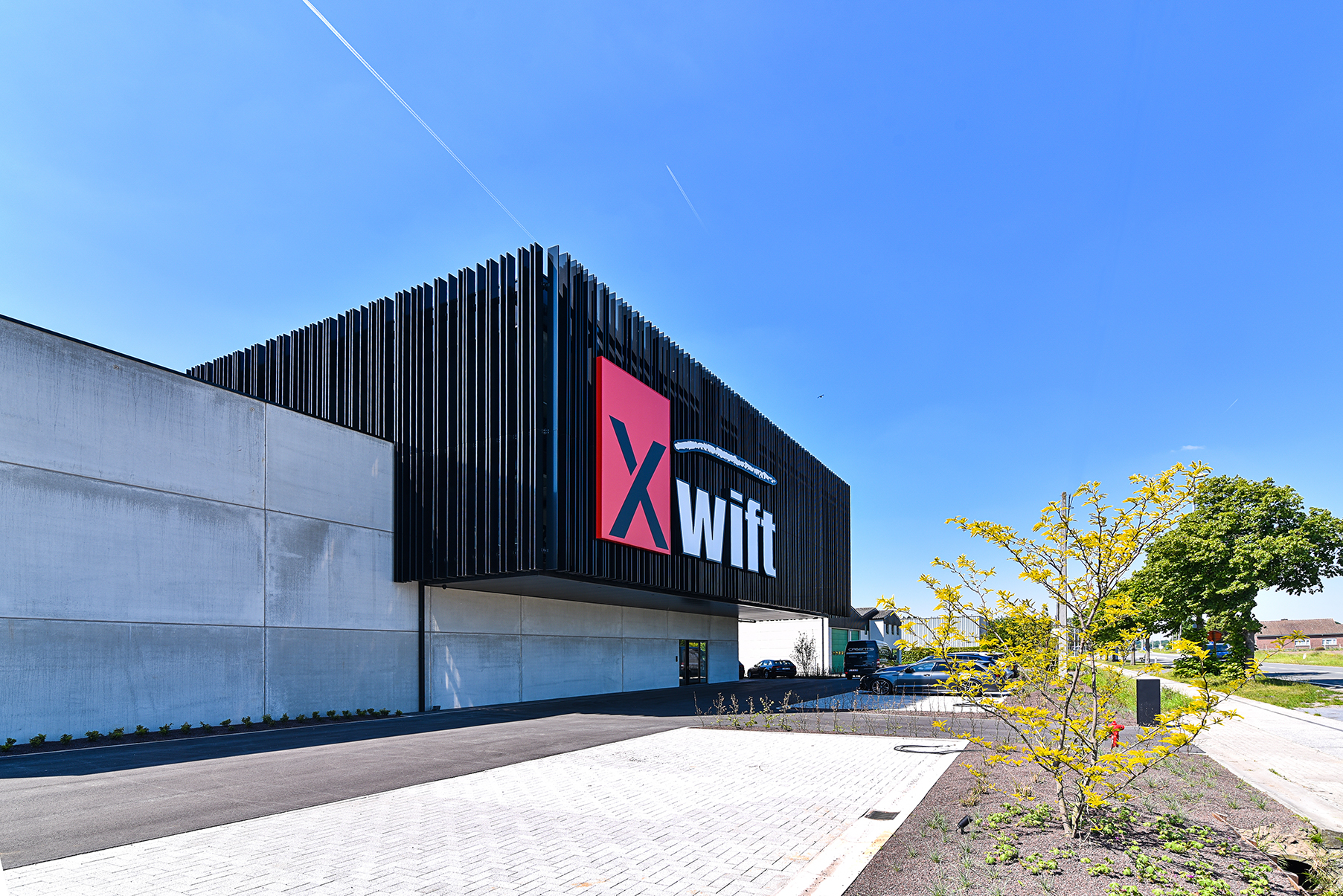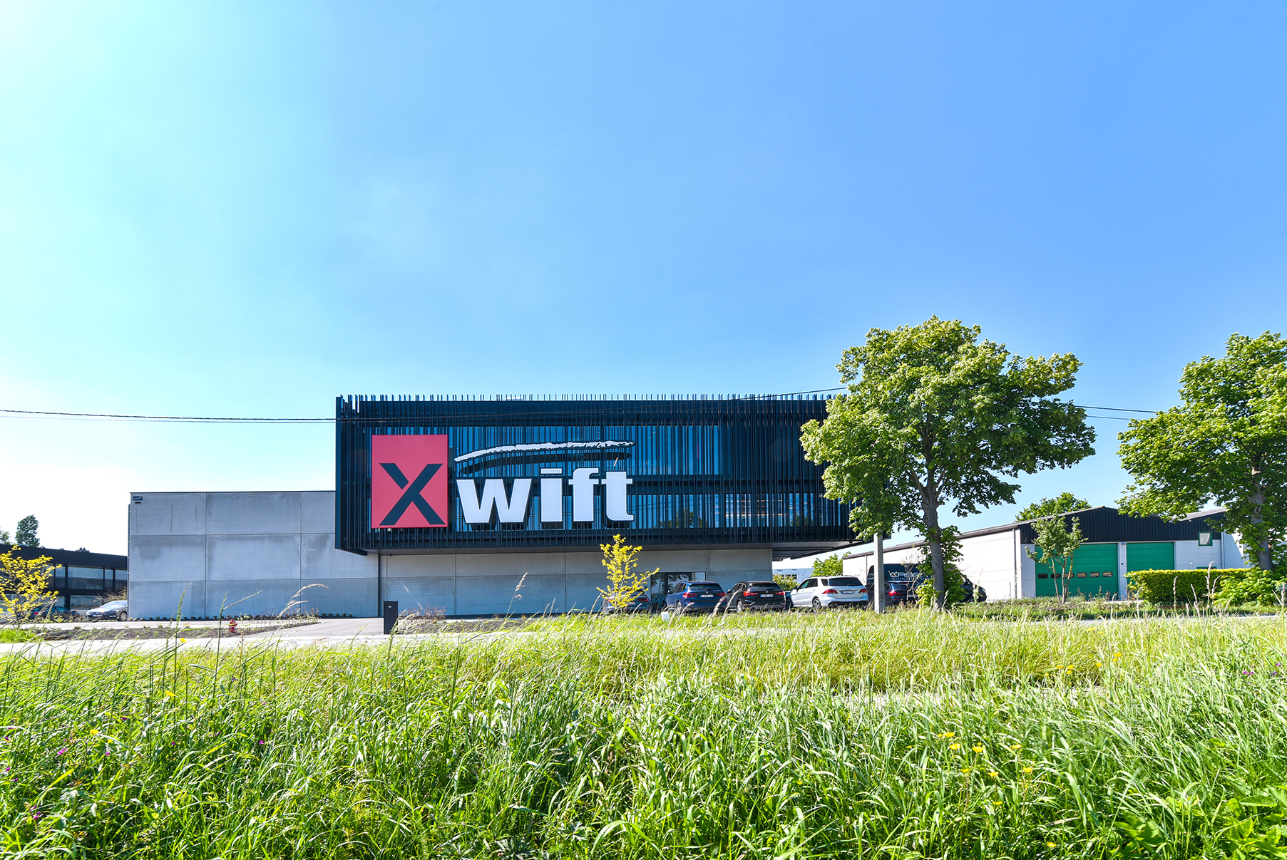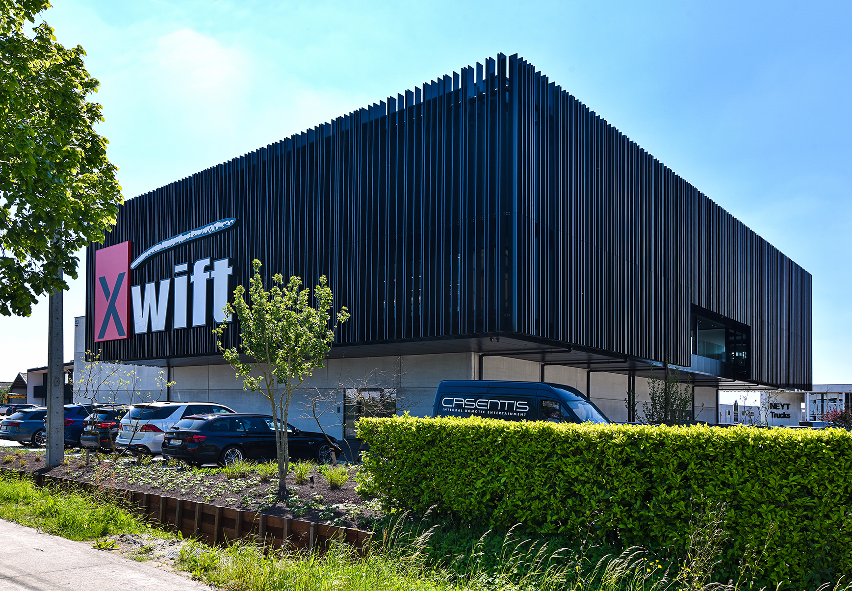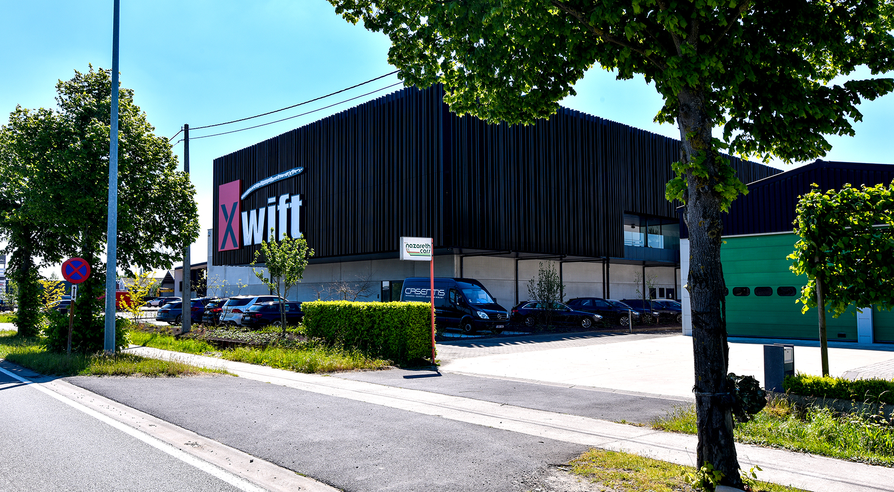 Wie zonder voorkennis de nieuwe site van Xwift oprijdt, vermoedt onmogelijk dat hier een transportbedrijf huist. Het gebouw werd zo ontworpen dat het een eyecatcher vormt in de omgeving. De firma kende de afgelopen jaren een enorme groei en was dringend aan een nieuwe hoofdzetel toe. Daarom week Xwift van Kruishoutem uit naar een braakliggend terrein in Nazareth van 3.500 m2.