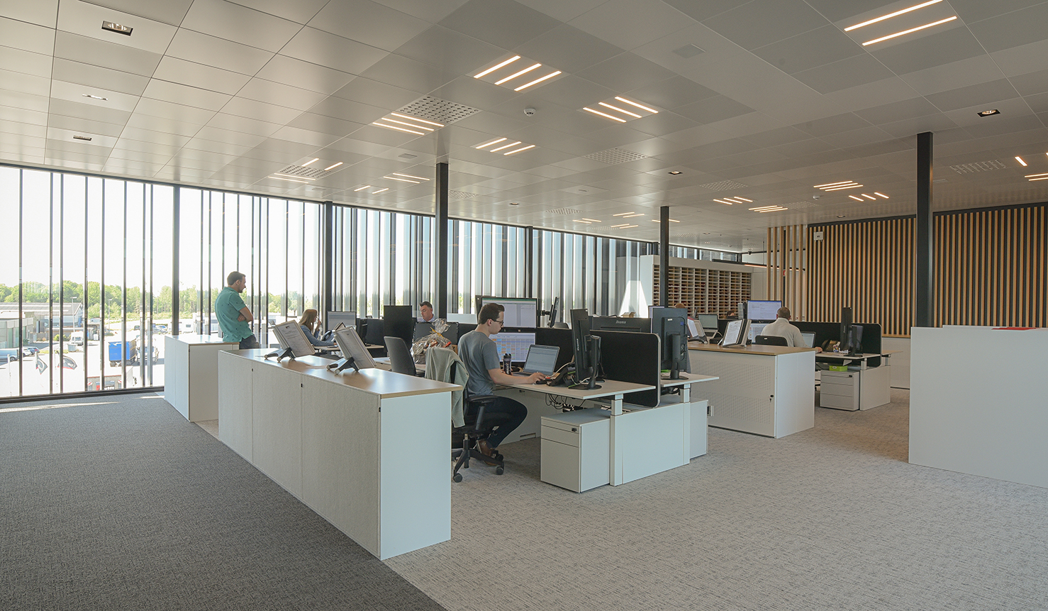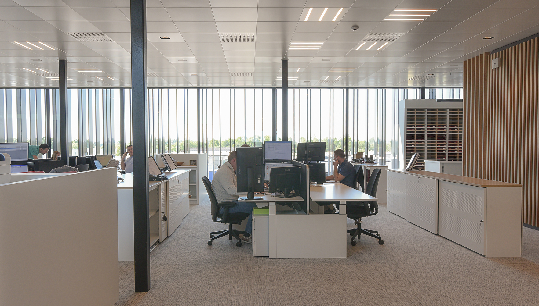 Het nieuwe kantoor is een schoolvoorbeeld van hoe je efficiënt kunt bouwen. Architect Bill Cosman benutte elke vierkante meter op het perceel optimaal. ‘Het gebouw heeft meer te bieden dan je zou denken’, gaat Cosman van start. Naast een laad- en loszone op het gelijkvloers voorzagen we op de bovenverdieping 1.200 m² polyvalente ruimte, die een oplossing moeten bieden aan de snel veranderende handelsmarkt. Daar bovenop werd aandacht besteed aan het well-being van de werknemers, door de integratie van een fitness ruimte.’