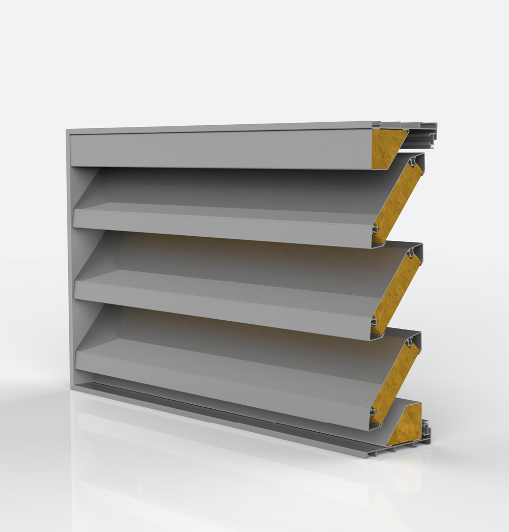 The DucoGrille Acoustic N 150 is a sound attenuating built-in wall grille, crafted from extruded aluminium profiles. The louvre blades are locked into place fast and easily on plastic blade holders, and are fitted with sound-attenuating, non-combustible mineral wool on the inside. Thanks to its solid construction, the DucoGrille Acoustic N 150 has a high damping value and a low resistance factor (and consequently a better flow rate).